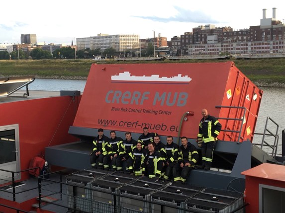 Atemschutzgeräteträger auf der mobilen Übungsanlage Binnen in Mannheim. Im Sommer nahmen mehrere Führungskräfte am Symposium „Wipfelfeuer“ in Schönau teil. Hier wurde in der Theorie und Praxis über Wald- und Flächenbrände referiert.