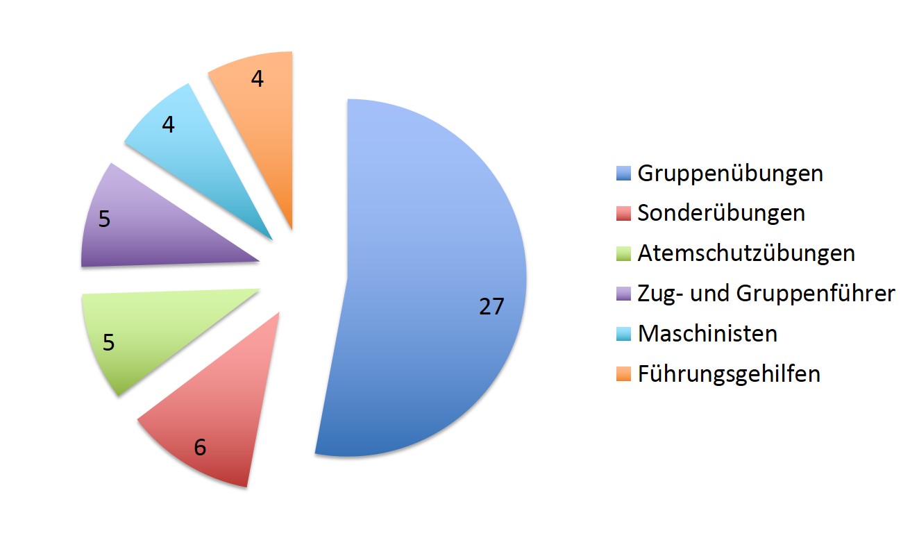 Dr. Lennart Rohrer, stellvertretender Abteilungskommandant, berichtete über die Ausbildung im Jahr 2017. Insgesamt gab es im regulären Übungsbetrieb 51 Übungstermine. Den Hauptteil machten hier die Gruppenübungen aus. Im letzten Jahr wurde ein Atemschutztag für die Gesamtwehr angeboten. Über 20 Atemschutzgeräteträger aus allen Abteilungen übten an verschiedenen Stationen Grundtätigkeiten im Atemschutzeinsatz. Neu war in diesem Jahr auch die Durchführung der Belastungsübung für
