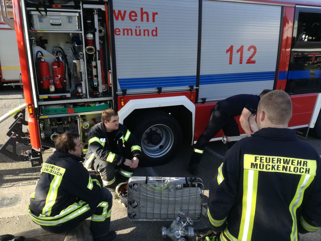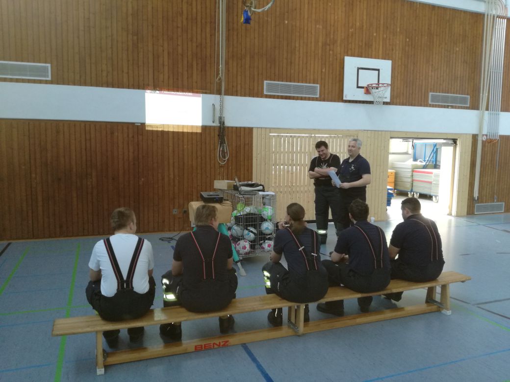 Um 08:30 Uhr begrüßten die Organisatoren die Teilnehmer bei einem kleinen Frühstückssnack und Kaffee. Anschließend wurden die Teams eingeteilt und an die verschiedenen Stationen verteilt. Dieses Jahr standen als Ausbildungsthemen Strahlrohrtraining, Korbbedienung Drehleiter, Atemschutznotfall & Reanimation sowie eine Orientierungsübung auf dem Plan.