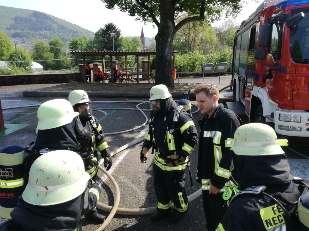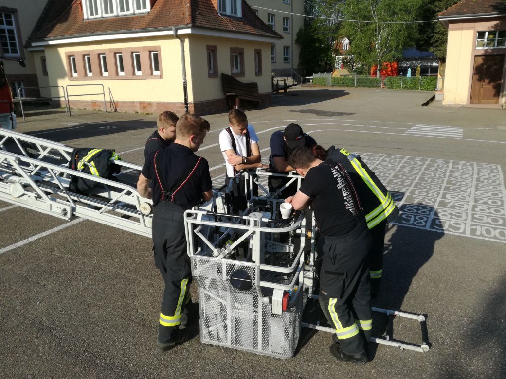 Die Korbbedienung ist für alle Atemschutzgeräteträger ein wichtiger Ausbildungsschwerpunkt bei der Feuerwehr Neckargemünd. Diese bedienen bei Brandeinsätzen den Korb der Drehleiter selbst. Durch die eingeschränkte Sicht der Maske, sowie die Enge auf Grund der Atemschutzgeräte auf dem Rücken, wird die Bedienung zusätzlich erschwert. Bei unterschiedlichen Aufgaben konnten die Atemschutzgeräteträger das Handling der Drehleiter vertiefen.