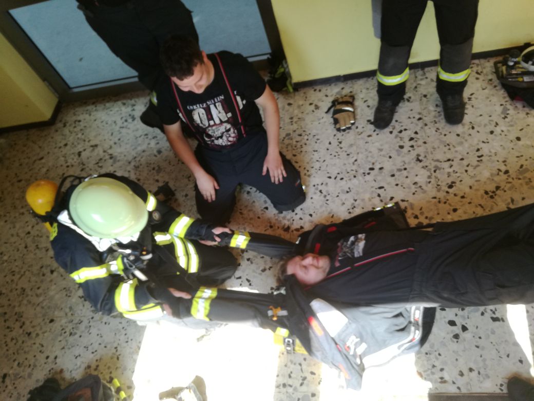 Bei Station drei „Atemschutznotfall & Reanimation“ wurden den Teilnehmern in einer kurzen Theorieeinheit das Vorgehen gezeigt. Anschließend wurde die Theorie in die Praxis umgesetzt. Bei einem Atemschutznotfall mit Herzstillstand ist Eile geboten. Unter Reanimation muss der verunfallte Atemschutzgeräteträger von seinem Gerät und der Schutzkleidung befreit werden. Dies ist notwendig um einen eventuell auftretenden Hitzestau zu unterbinden. Zeitgleich sollte die Unterbrechung der Herzdruckmassage so kurz wie möglich sein.
