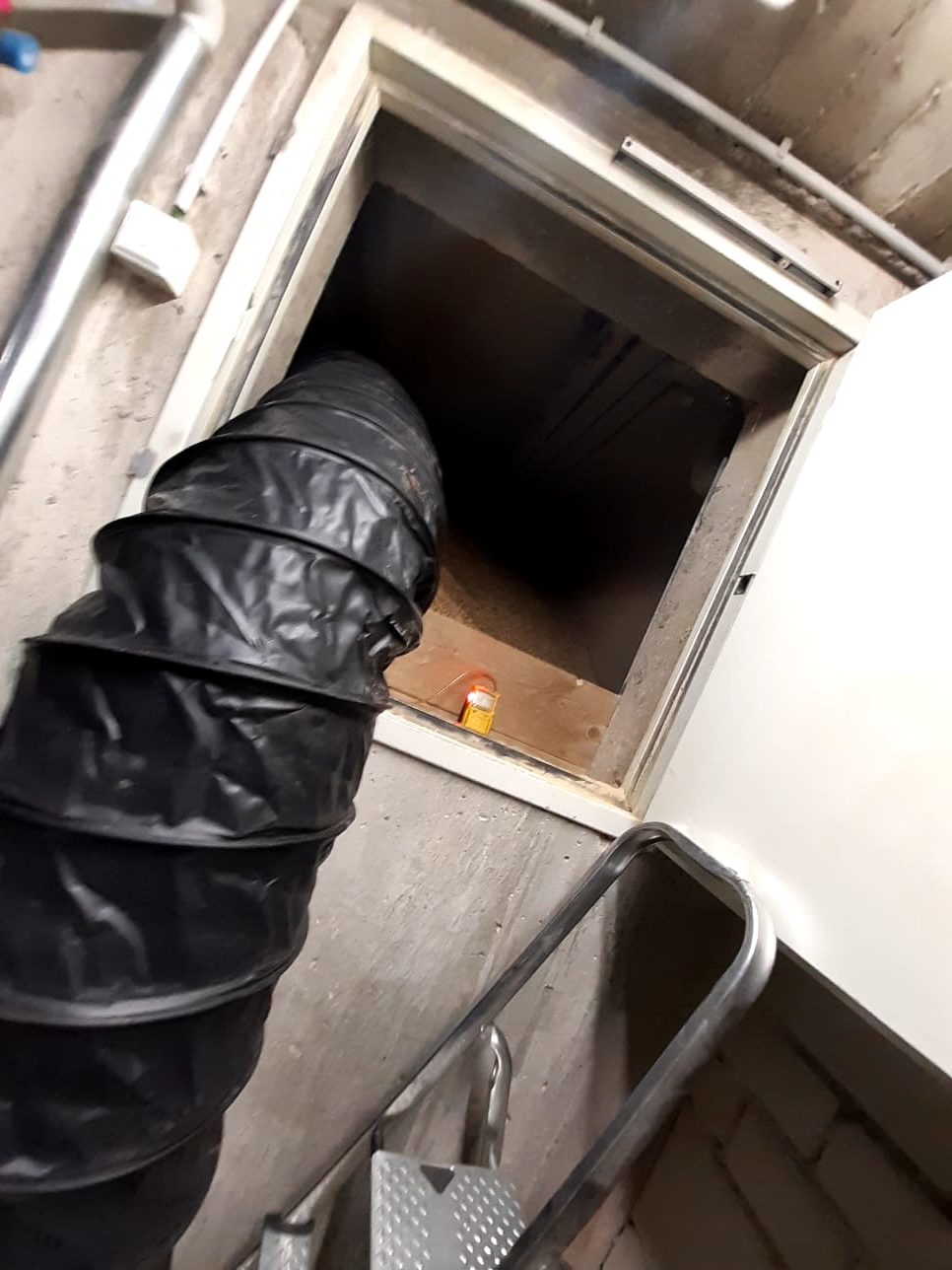 Nachdem keine erhöhten Temperaturen mit der Sonde im Bunker gemessen werden konnte wurden Belüftungsmaßnahmen mittels Lüfter und Be- und Entlüftungsgerät zur Senkung der CO-Werte aufgebaut. Zusätzlich wurde die Halle durch das Auslösen des Rauchabzuges und einem Lüfter belüftet. Durch die Belüftungsmaßnahmen konnten die CO-Werte gesenkt werden. Hier kam der Verdacht auf, dass es sich um einen Zersetzungsprozess der Pellets handeln könnte. Nach Beendigung der Belüftungsmaßnahmen wurden nochmals die Werte kontrolliert. Diese blieben stabil.
