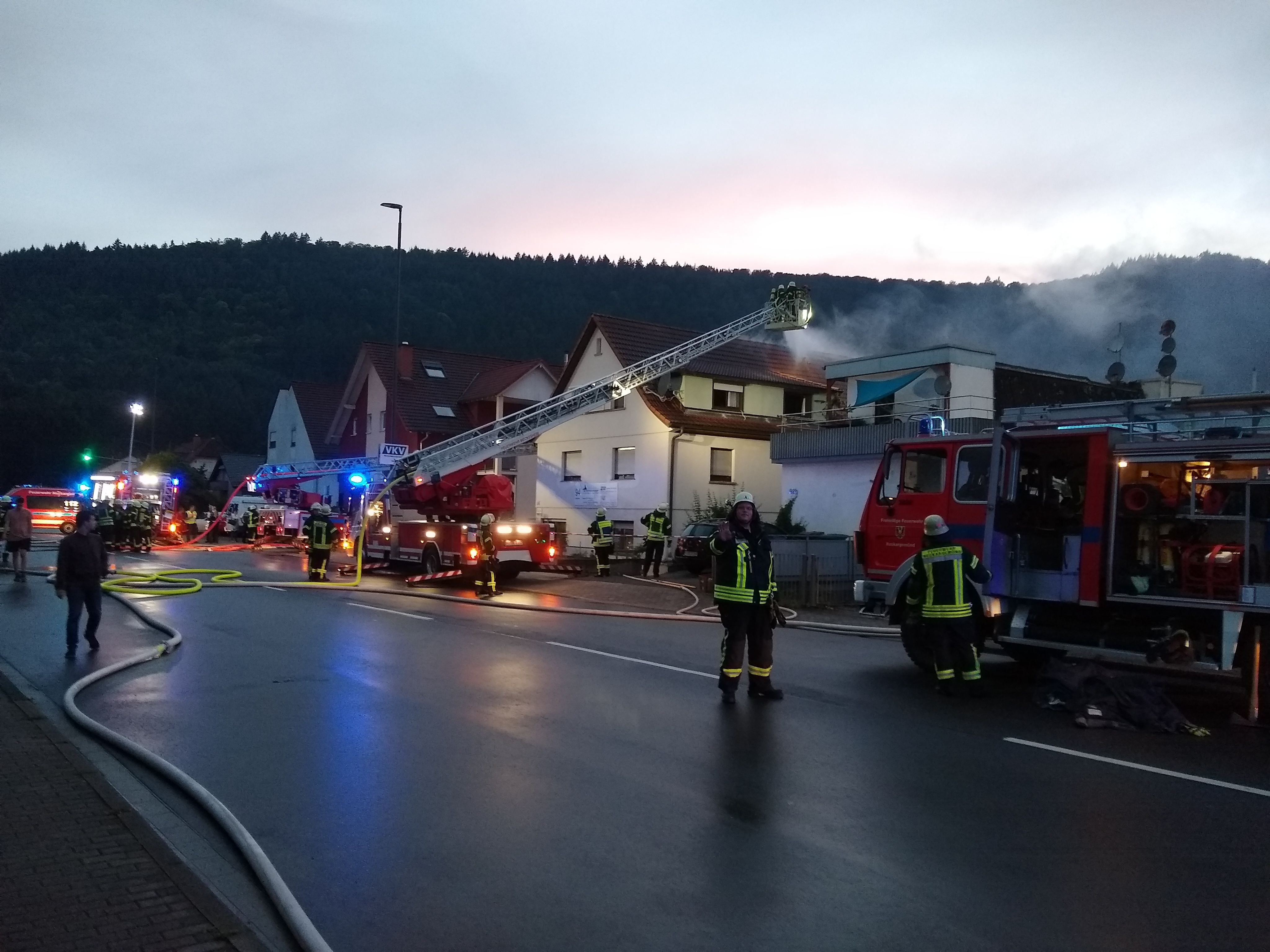Durch Innen- und Außenangriffe mit Hilfe von zwei Drehleitern, konnte der Wohnungsbrand schnell unter Kontrolle gebracht werden. Ein Übergriff auf benachbarte Wohnräume konnte verhindert werden. Während der Löscharbeiten musste die Bahnhofstraße gesperrt werden. Der Sachschaden beläuft sich laut Aussagen der Brandermittler auf ca. 100.000 Euro. Im Einsatz waren die Feuerwehren Neckargemünd, Dilsberg, Mückenloch, Waldhilsbach sowie Meckesheim. Rettungsdienst, Notarzt und Polizei waren ebenfalls vor Ort, zusätzlich auch Mitglieder des Feuerwehr-Seelsorge-Teams (FST) zur Betreuung betroffener Personen.