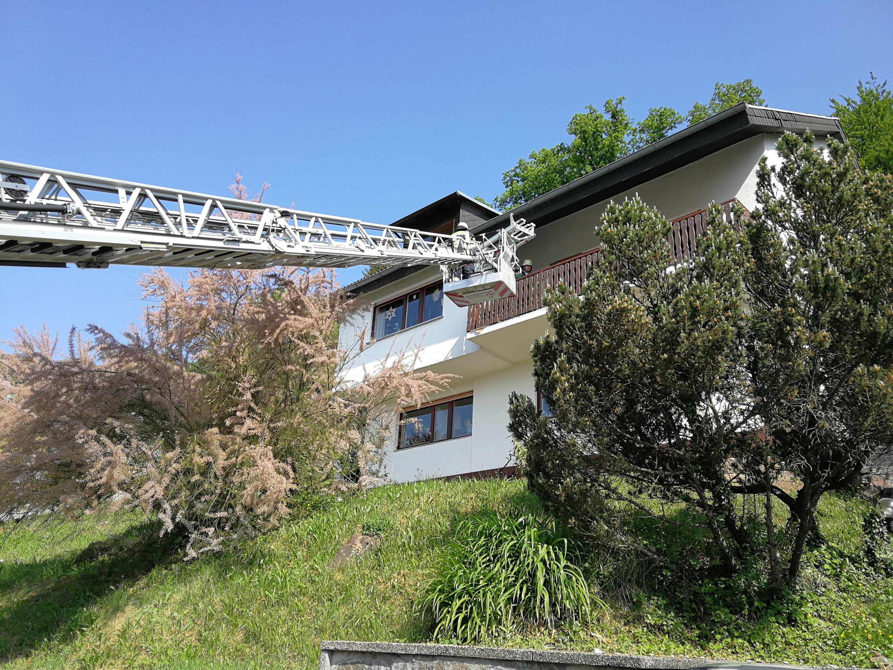 Neben dem Einsatzleitwagen und der Drehleiter aus Neckargemünd waren ein Kommandowagen und ein Löschfahrzeug der Feuerwehr Neckarstein sowie ein Notarzteinsatzfahrzeug und ein Rettungswagen vor Ort.