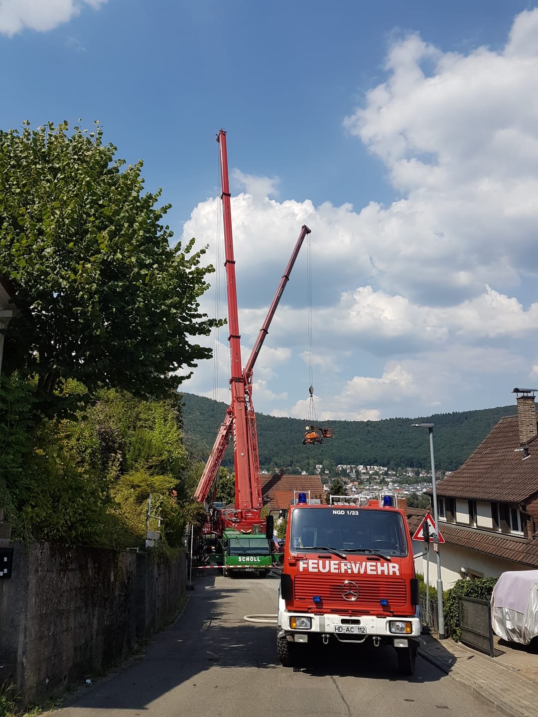 Am Freitag begann die eigentliche Bergung des Krans durch Spezialisten mit Hilfe von zwei Autokränen. Da als Trennwerkzeug nur ein Schneidbrenner in Frage kam, wurde die Feuerwehr Neckargemünd zu einer Brandwache während der Bergungsarbeiten beauftragt. Mittels Tanklöschfahrzeug und dem entsprechenden Personal wurden die Arbeiten am Freitagmittag ab 12 Uhr abgesichert. Glücklicherweise kam es zu keinen Zwischenfällen. Einsatzende war hier gegen 18:30 Uhr.