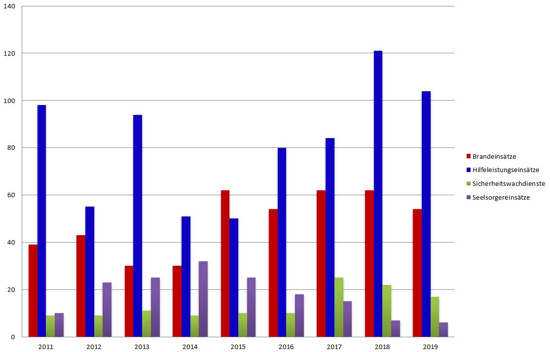 Der einsatzreichste Monat war der Mai mit 25 Einsätzen gefolgt vom April mit 22 Einsätzen.