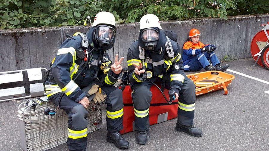 Durch die Atemschutztrupps mussten mehrere verletzte Personen aus dem Gebäude gerettet werden. Dabei wurden neben Übungspuppen auch zwei Mitglieder unserer Jugendfeuerwehr als Verletztendarsteller eingesetzt.