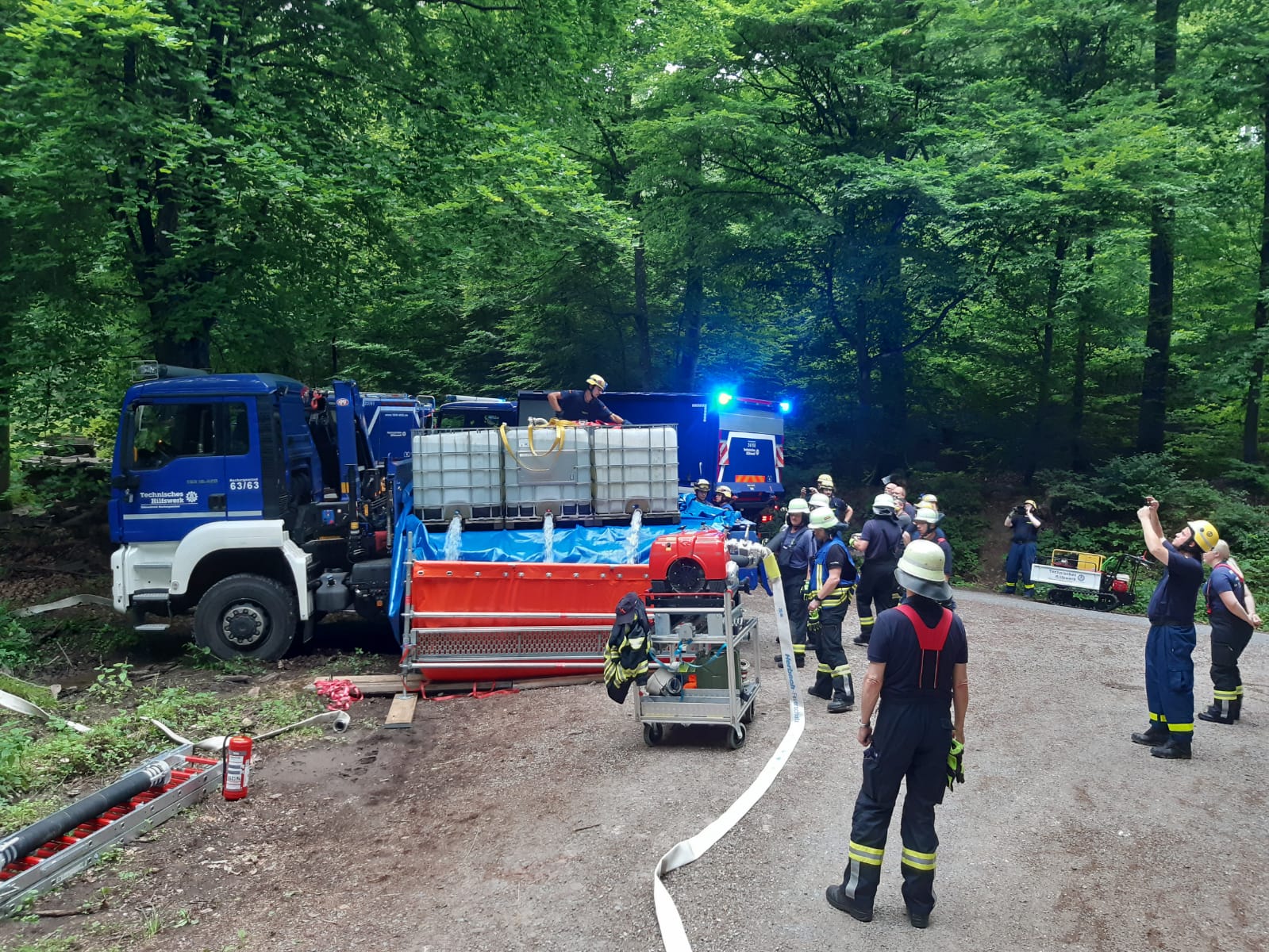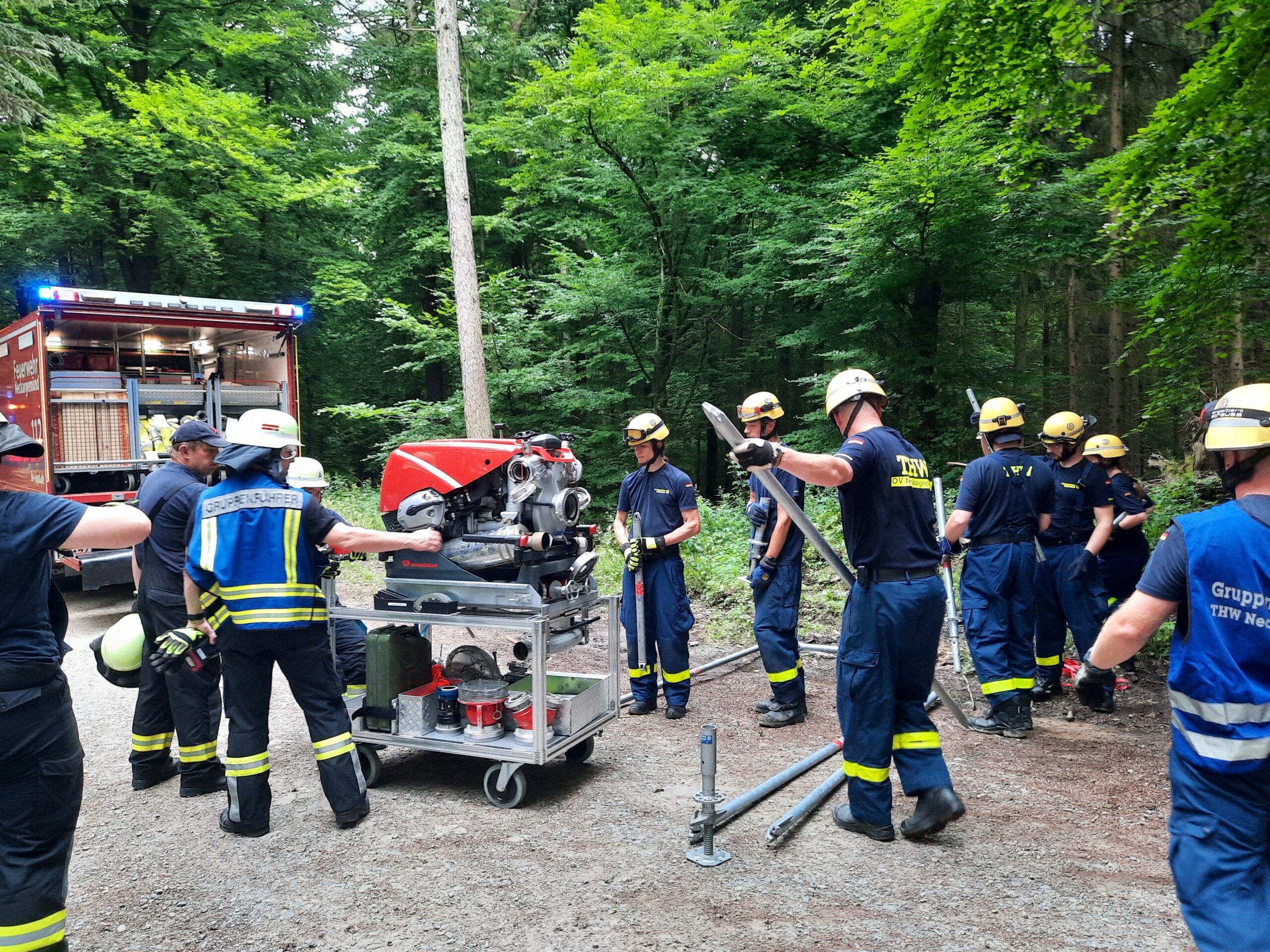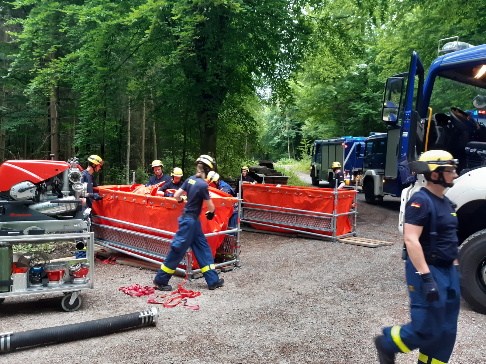 Am Donnerstagabend, den 30. Juni 2022 fand im städtischen Wald eine gemeinsame Übung der Feuerwehr Neckargemünd und des Technischen Hilfswerks statt. Auf dem Ausbildungsplan standen an diesem Abend die Themen der Wasserförderung und der Vegetationsbrandbekämpfung. Aufgrund zunehmender Hitze und Trockenheit im Sommer sind die Themen aktueller denn je.