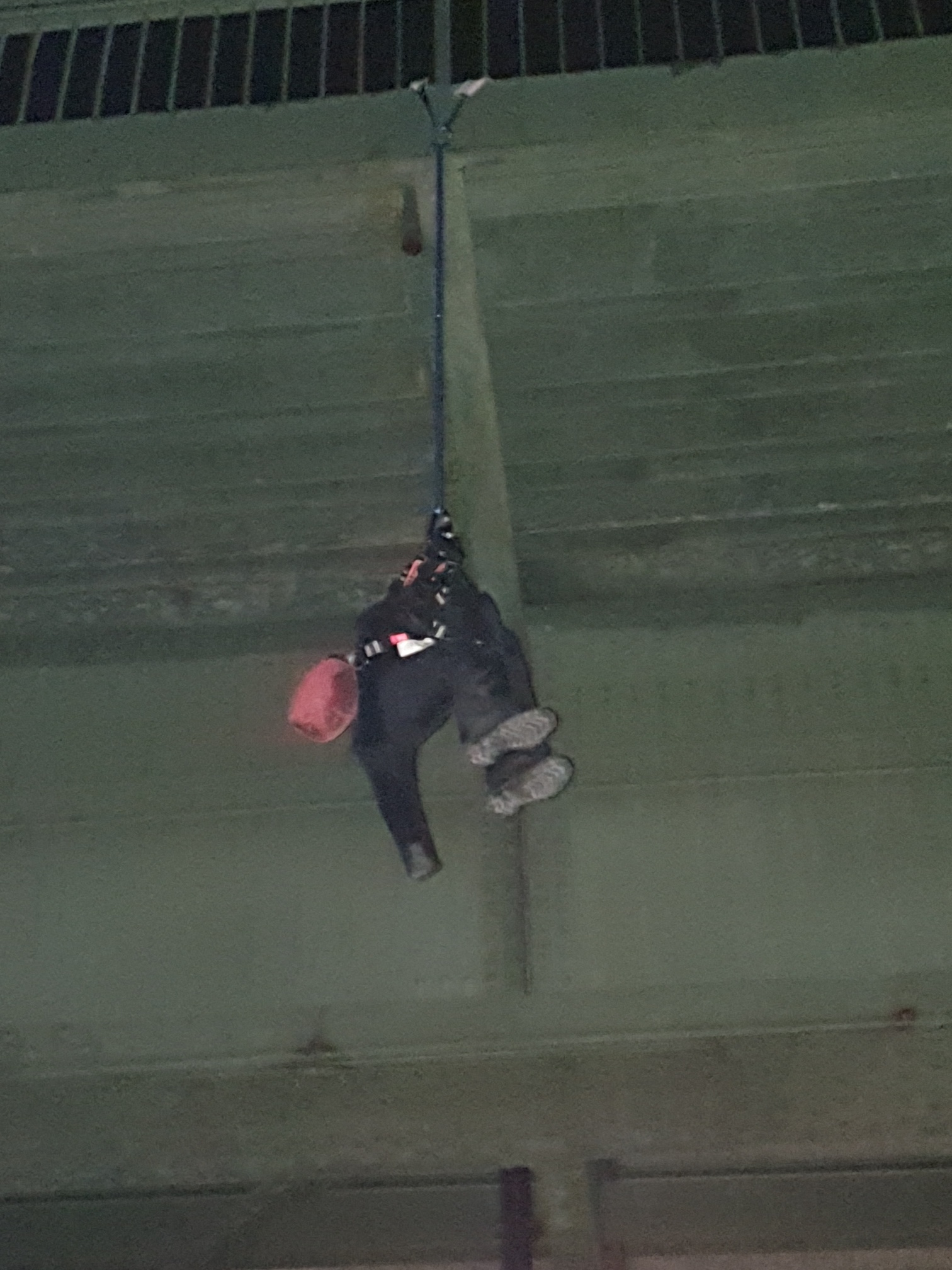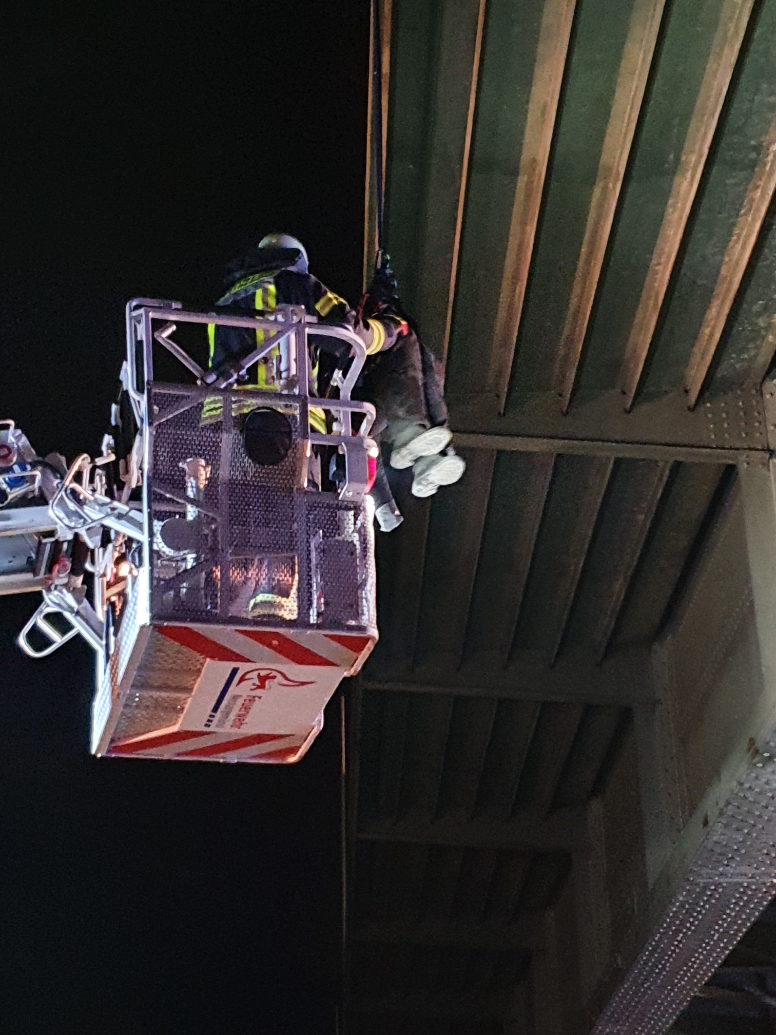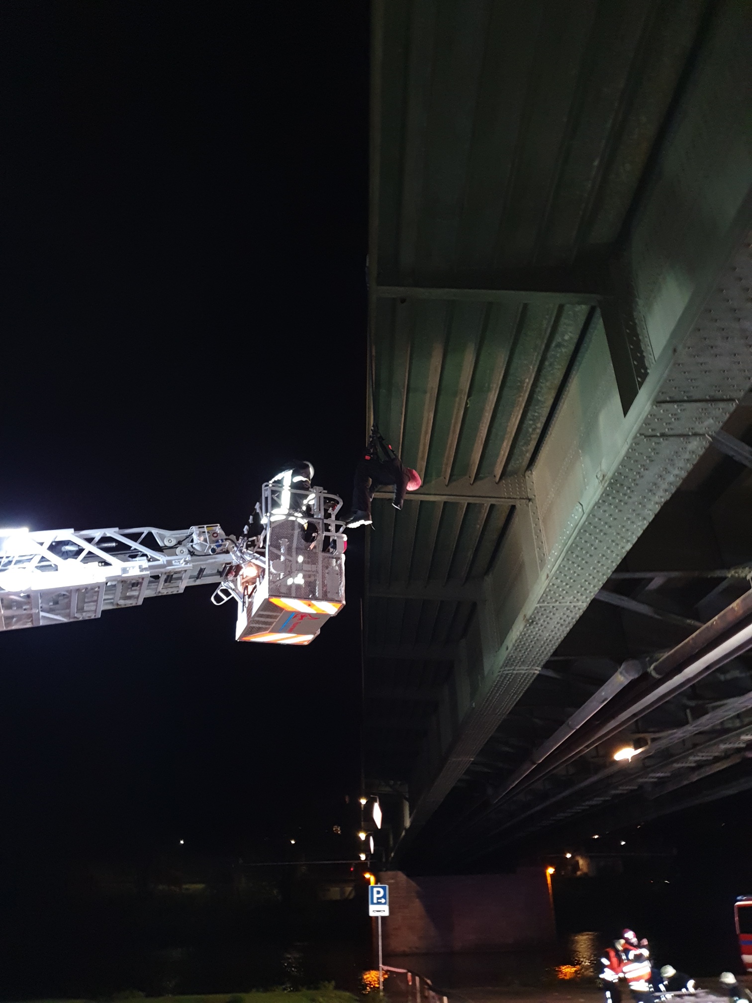An der Friedensbrücke fanden Reinigungsarbeiten auf einer Arbeitsplattform statt. Durch die Erschütterung der Reparaturen, stürzte die komplett durchgerostete Plattform ab. Ein Arbeiter befand sich auf der Plattform und fiel dabei in seinen Gurt und konnte sich selbst nicht mehr retten. Die abgestürzte Plattform trifft zudem einen Spaziergänger, Teile der Plattform klemmen nun seine Beine ein. Eine weitere Arbeiterin war gerade Kaffee holen, wurde somit nicht verletzt und konnte die Feuerwehr alarmieren.