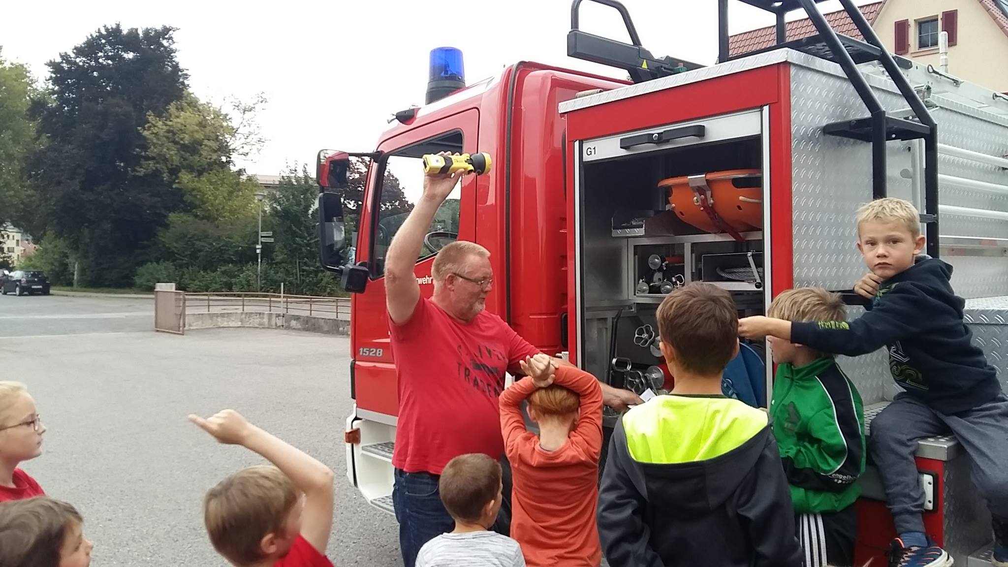 Am letzten Freitag war es wieder soweit, unsere Kleinsten trafen sich im Feuerwehrhaus in der Schützenhausstraße. Die Minis wurden in zwei Gruppen aufgeteilt. Auf dem Programm stand einmal die Erkundung unsere Drehleiter. Diese wurde auf den Kopf gestellt und geschaut was alles an Ausrüstung verladen ist.