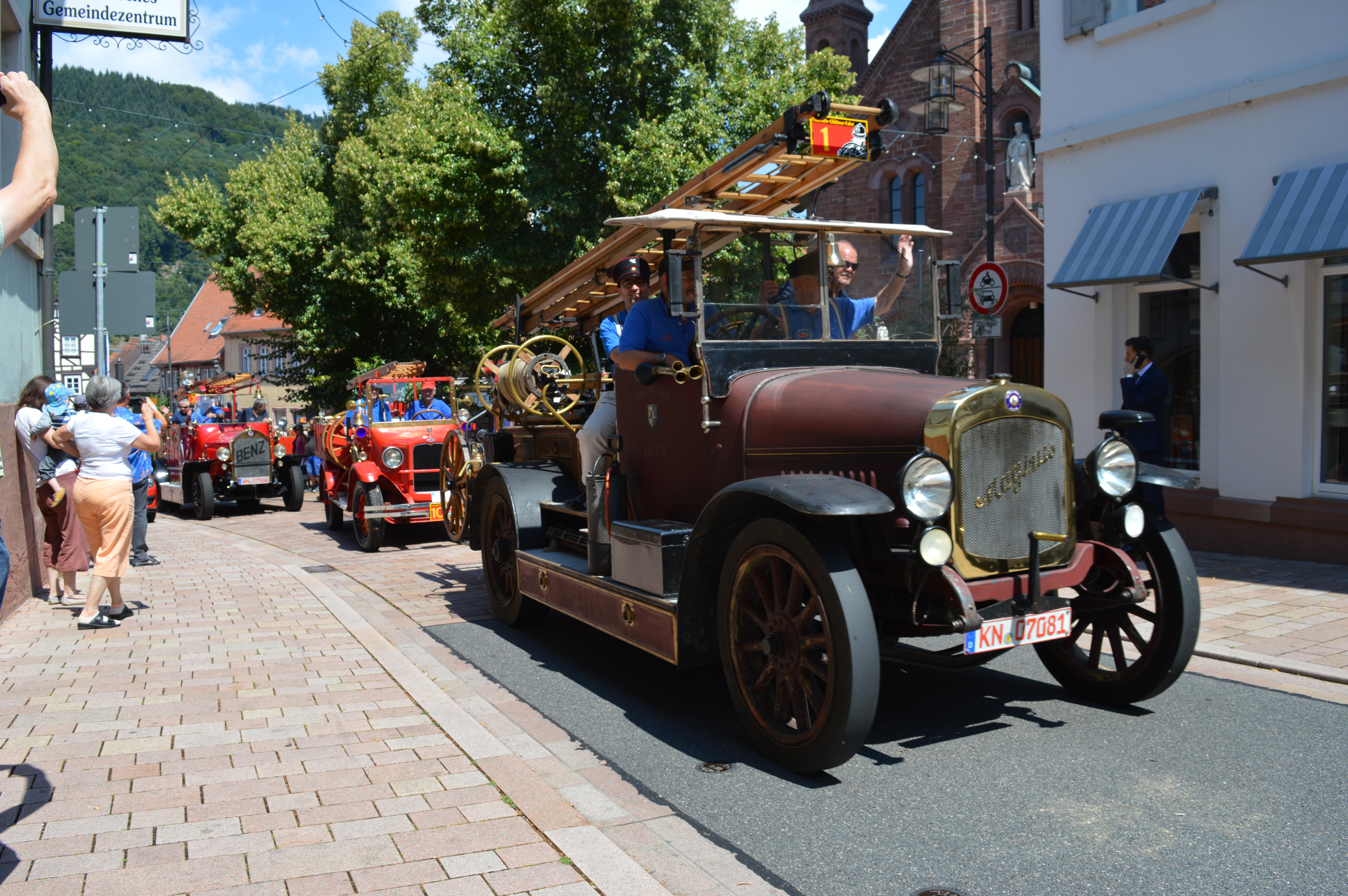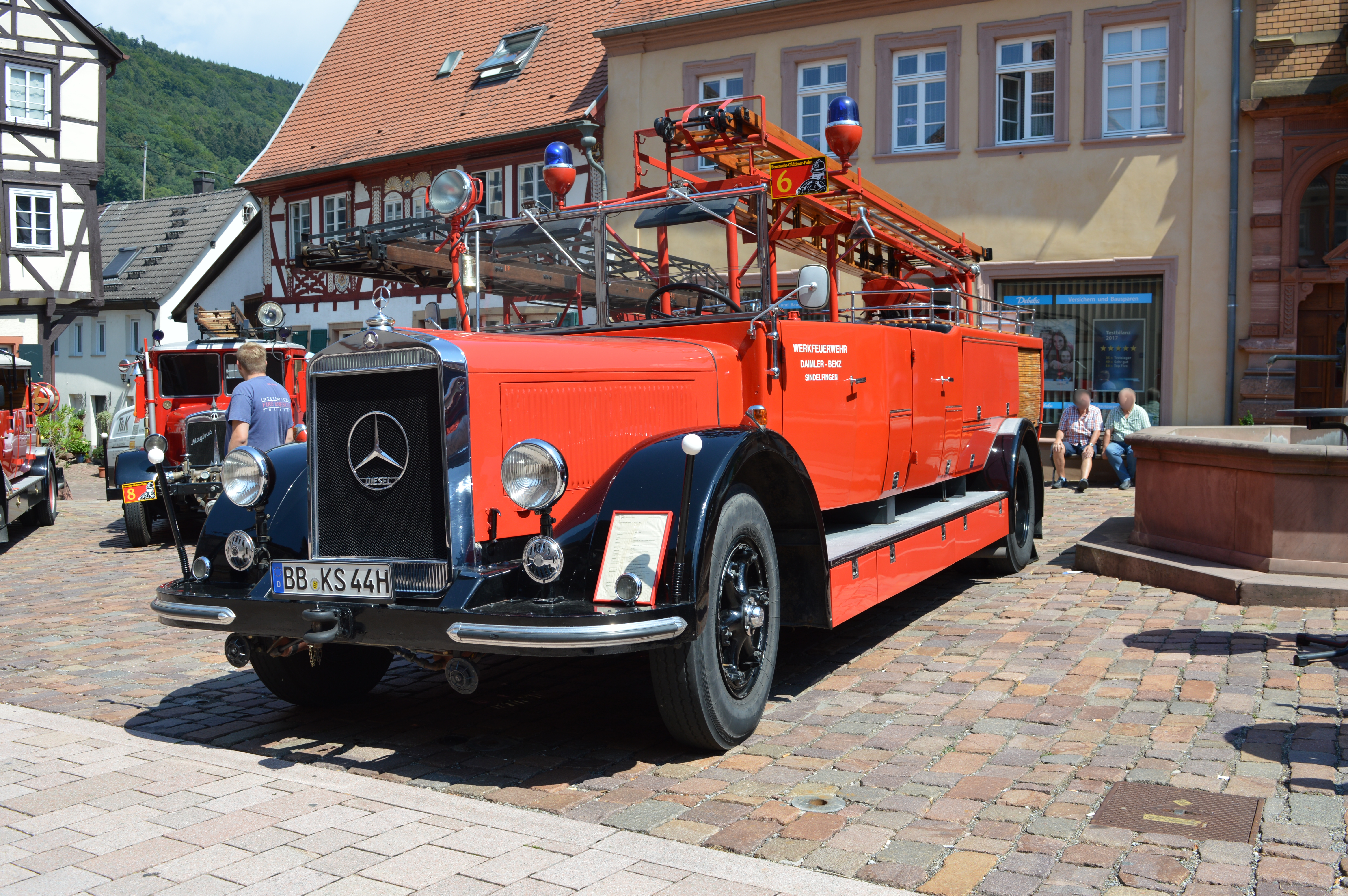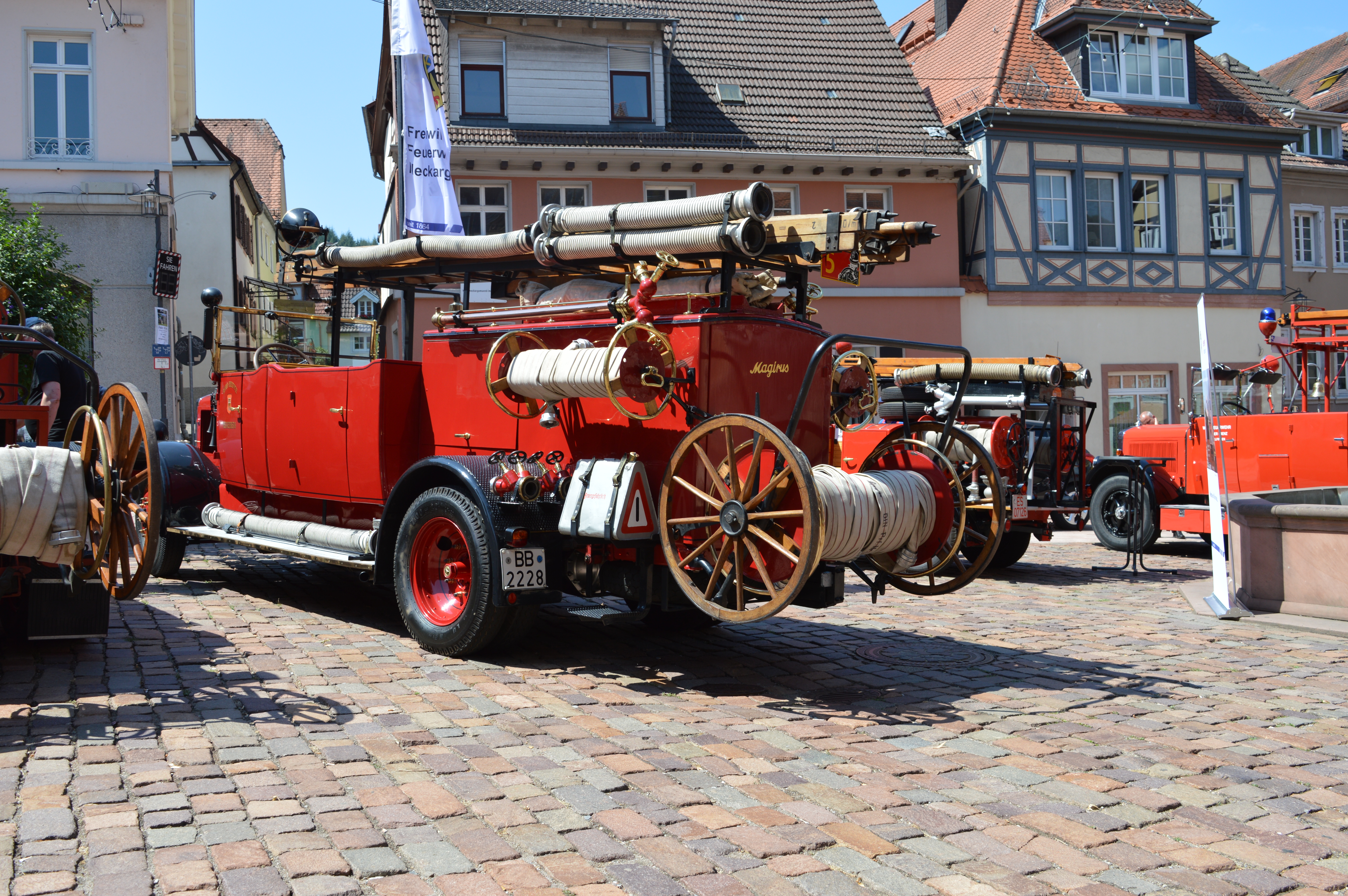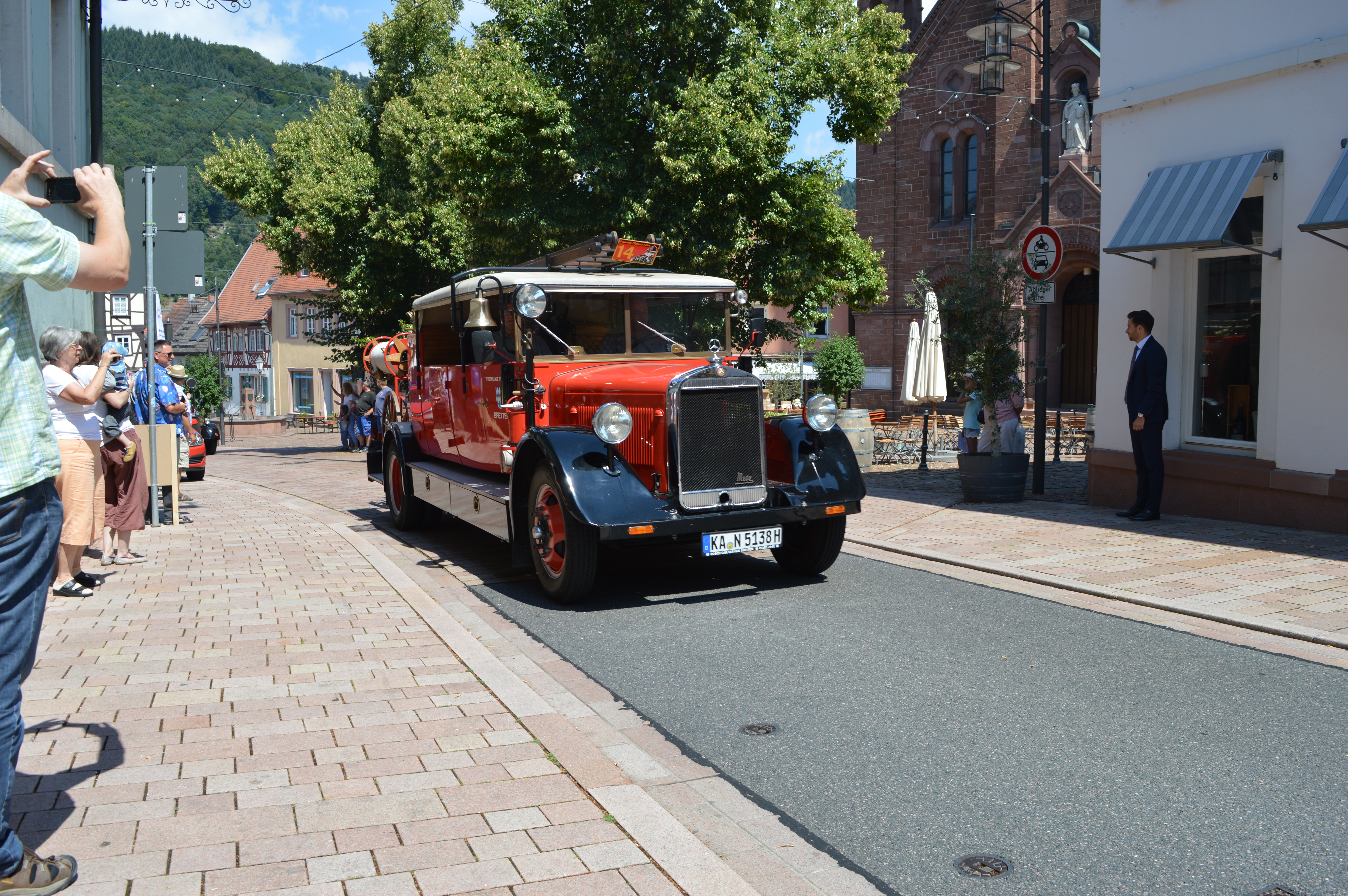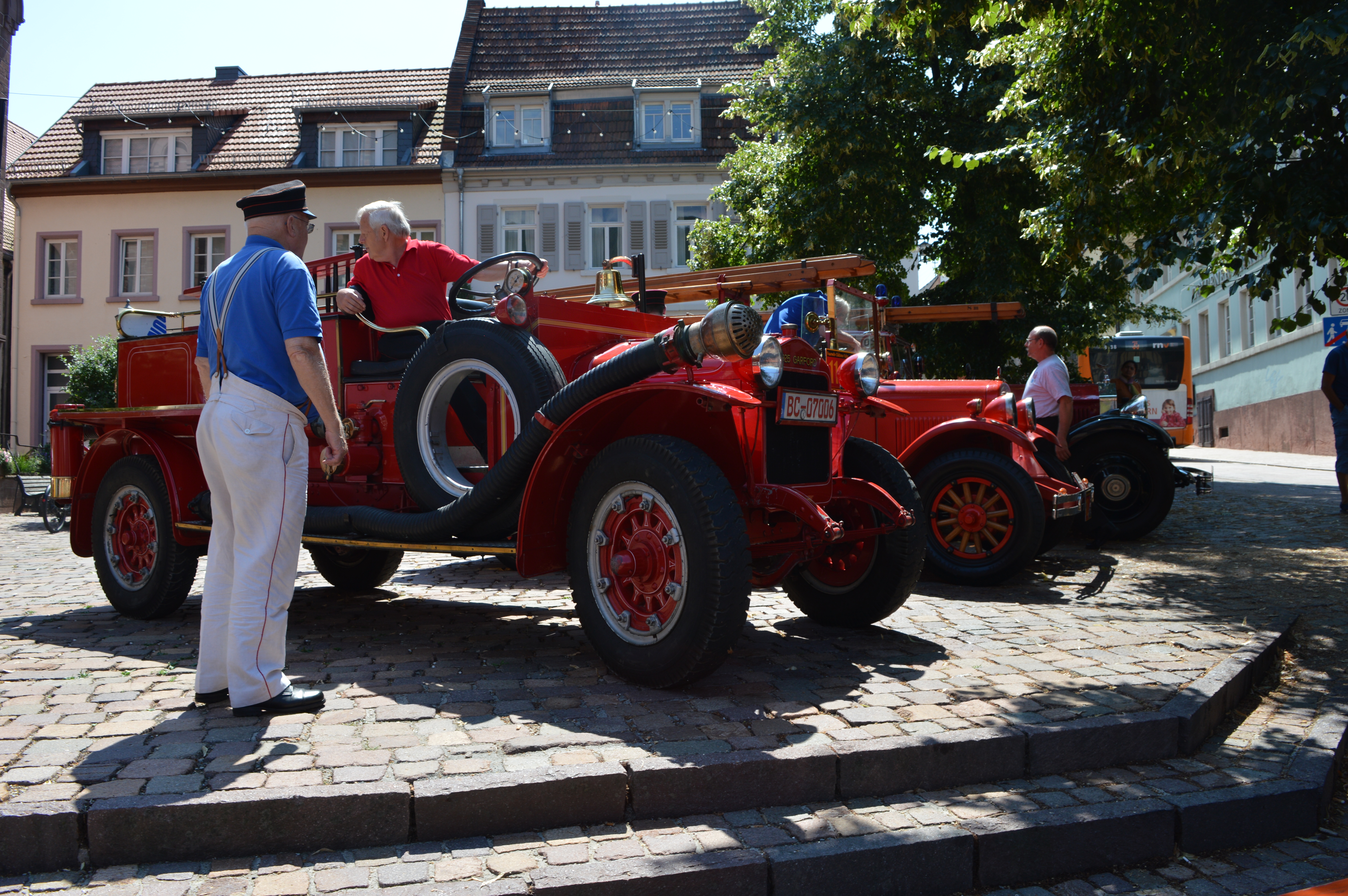 Anlässlich des 12. Landesfeuerwehrtag in Heidelberg machte die Oldtimerrundfahrt auch einen Zwischenstopp auf dem Marktplatz in Neckargemünd. 12 historische Fahrzeuge aus dem Feuerlöschwesen sind derzeit in der Region unterwegs und besuchen verschiedene Städte und Gemeinden, bevor Sie am kommenden Wochenende auf dem Landesfeuerwehrtag in der Heidelberger Altstadt zu bestaunen sind.