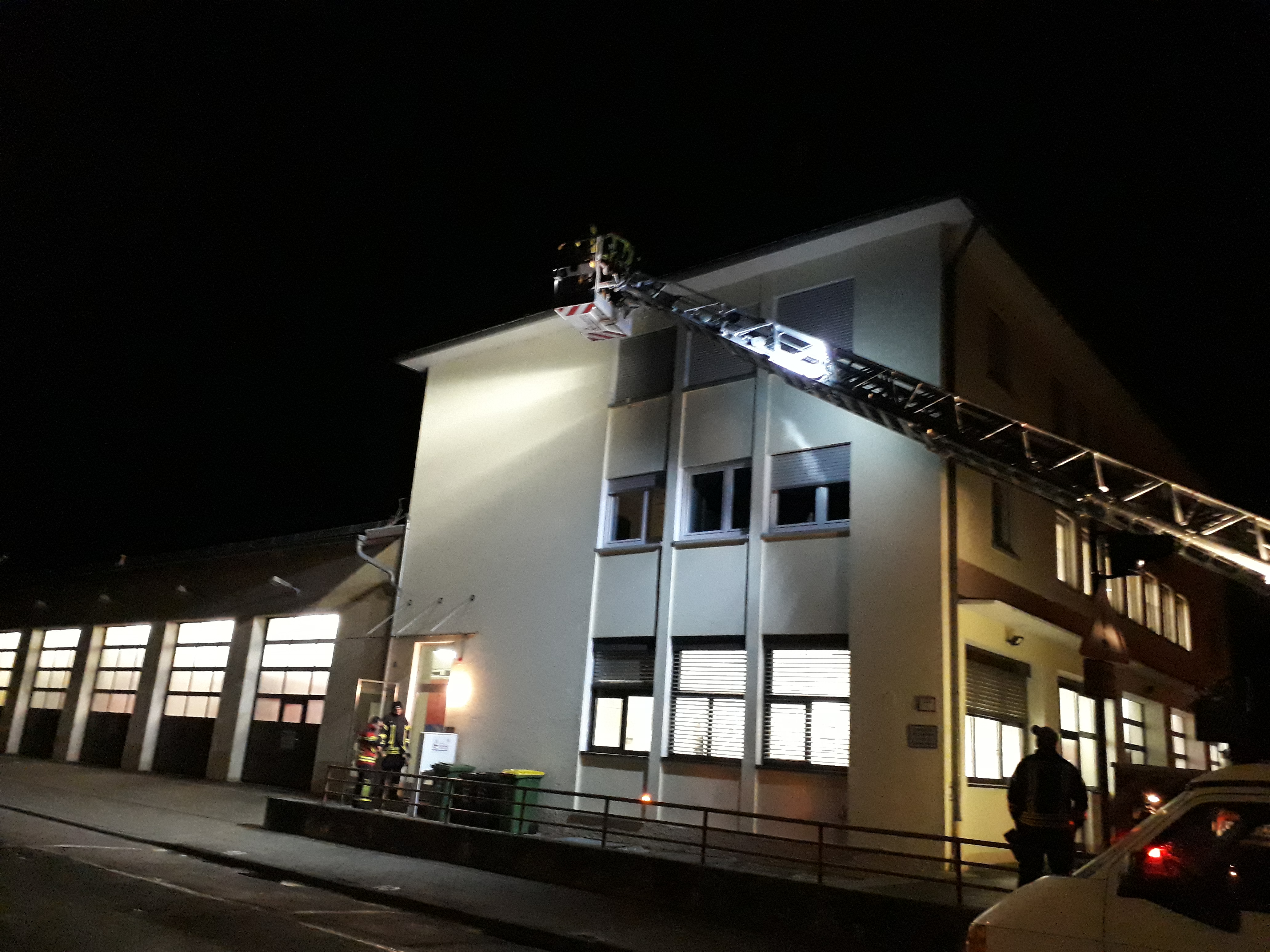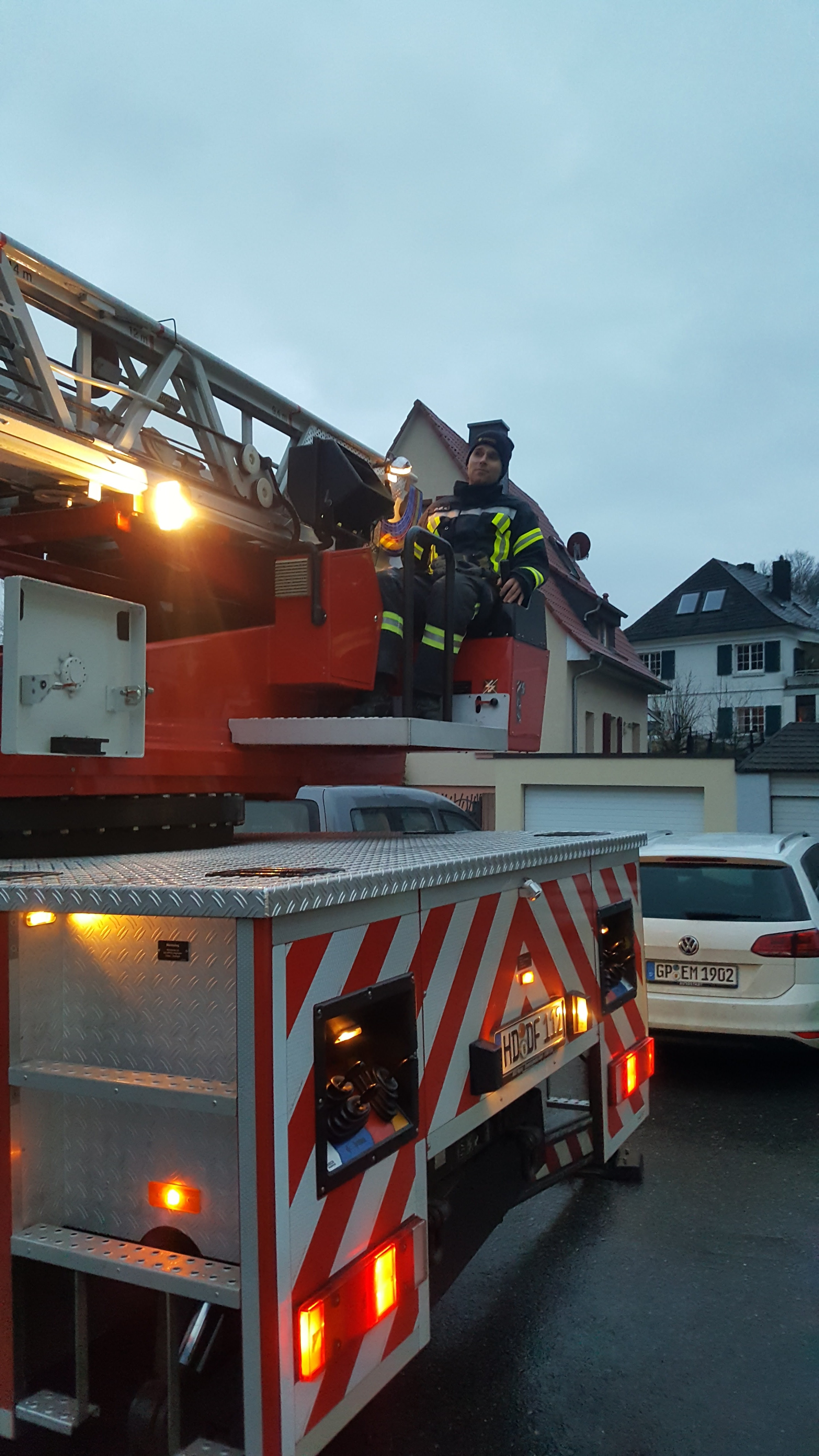 Als erstes wurde unser Hubrettungsfahrzeug unter die Lupe genommen, damit sich jeder nochmal alle Funktionen und Leistungskenndaten ins Gedächtnis rufen konnte. Hierzu nutzten wir die noch vorhandene Helligkeit des späten Tages bis zur letzten Minute aus. Nach einem kurzen Snack zur Stärkung ging es mit einem kurzen Theorieblock weiter. Dank der noch gut vorhandenen Grundlagen konnten wir schnell zur Praxis übergehen. Die Dunkelheit und die Kälte waren für das Gerät keine Herausforderung. Die Mannschaft konnten sich durch gute Schutzkleidung behelfen und so konnten die ersten Übungen absolviert werden. Am späten Abend beendeten wir dann den Übungstag.