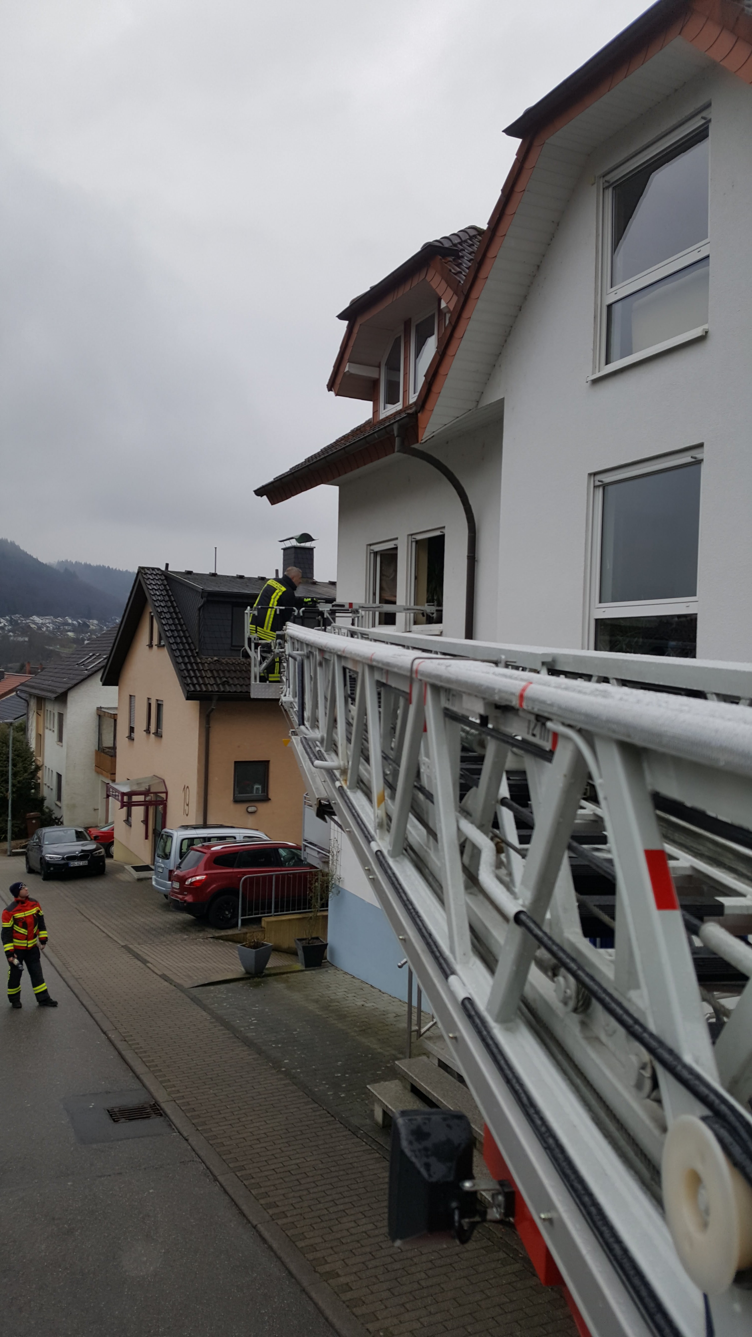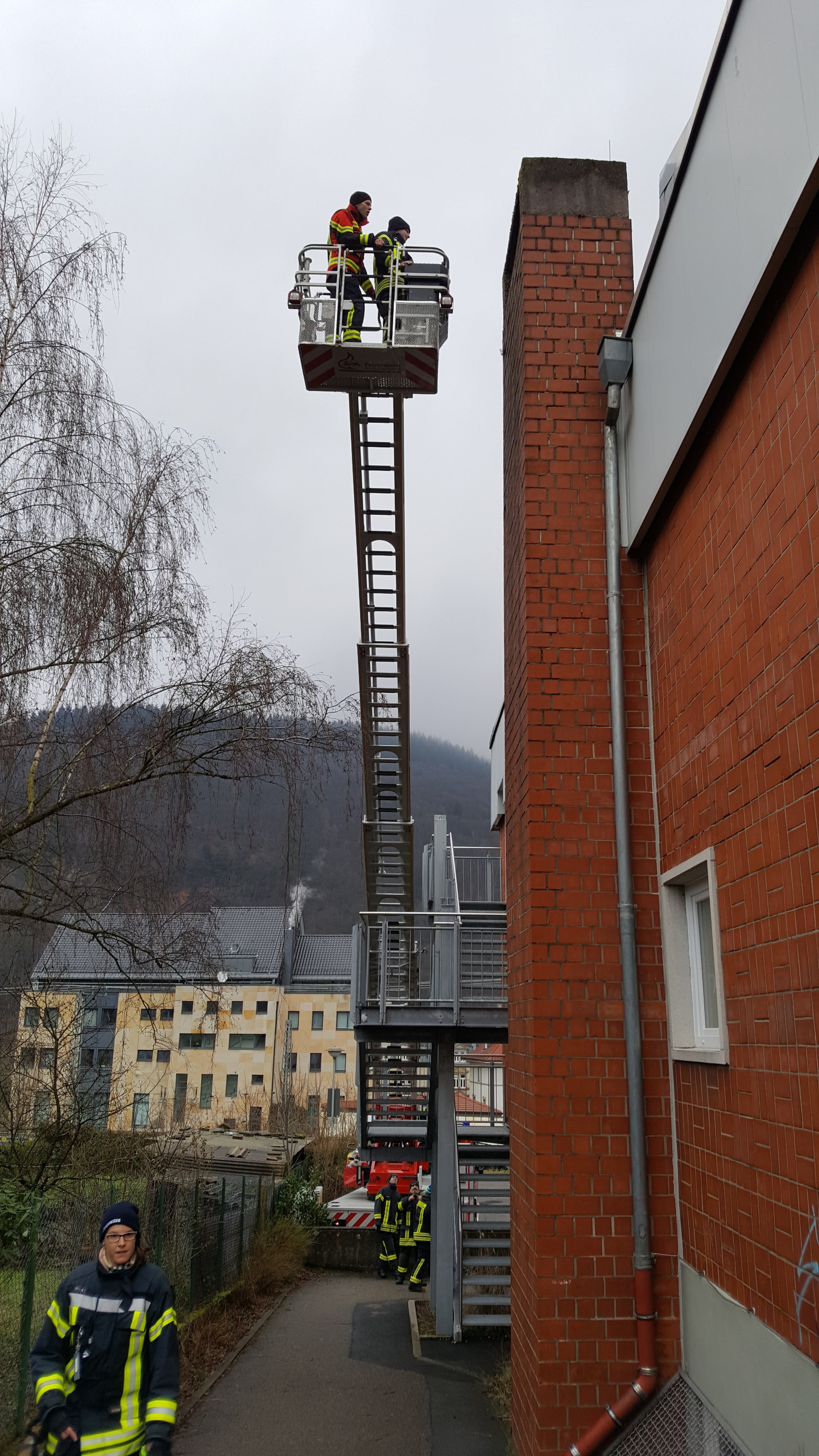Ein Wochenende mit unbeständigem Wetter, von wenig Sonnenschein über Regen bis hin zu Schneefall, hielt eine kleine Gruppe nicht davon ab, das vorhandene Können und Wissen im Drehleitereinsatz aufzufrischen und sich fortzubilden.