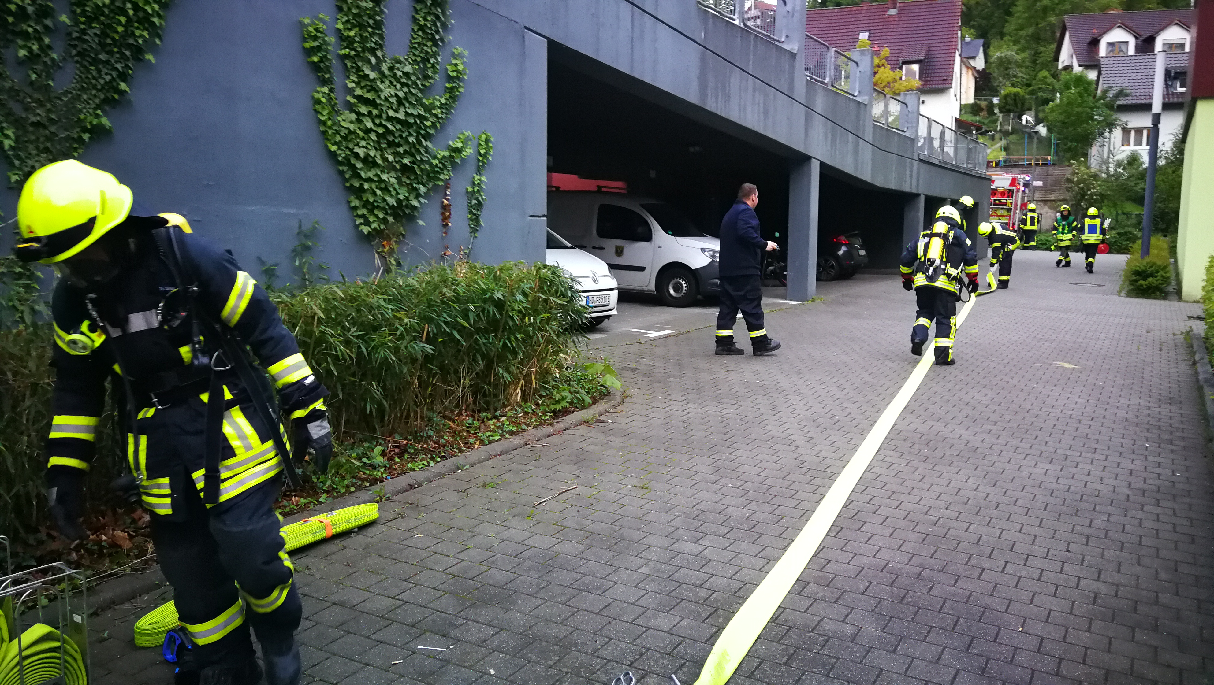Ein Unternehmer teilte dem Einsatzleiter mit, dass mehrere Monteure im Bereich der Heizungsanlage gearbeitet haben und er diese nun vermisst. Darauf wurde über zwei Angriffswege, einmal durch den Eingangsbereich des Gymnasiums und einmal über den Außenbereich, die Menschenrettung und Brandbekämpfung eingeleitet. Mehrere Trupps unter umluftunabhängigen Atemschutz suchten die verwinkelten und stark verrauchten Räume nach den vermissten Personen ab und retteten diese.