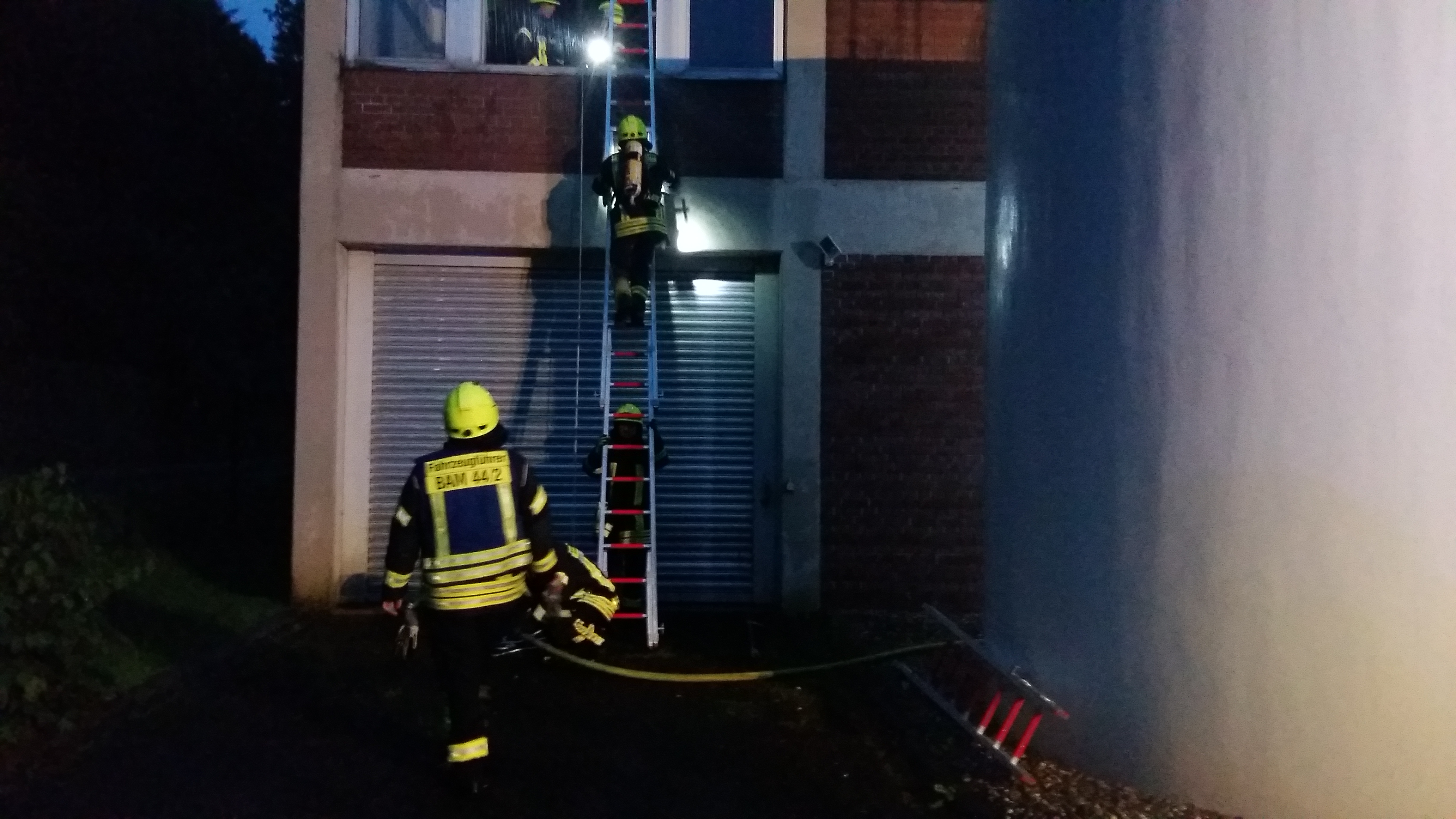 Im weiteren Verlauf wurde der Angriffstrupp vom Hilfeleistungslöschfahrzeug zusätzlich im Obergeschoss eingesetzt. Ein weiterer Trupp stand als Sicherheitstrupp in Bereitschaft. Nachdem die Person gefunden und über die Drehleiter gerettet wurde sowie der Brand bekämpft war hieß es Übungsende.