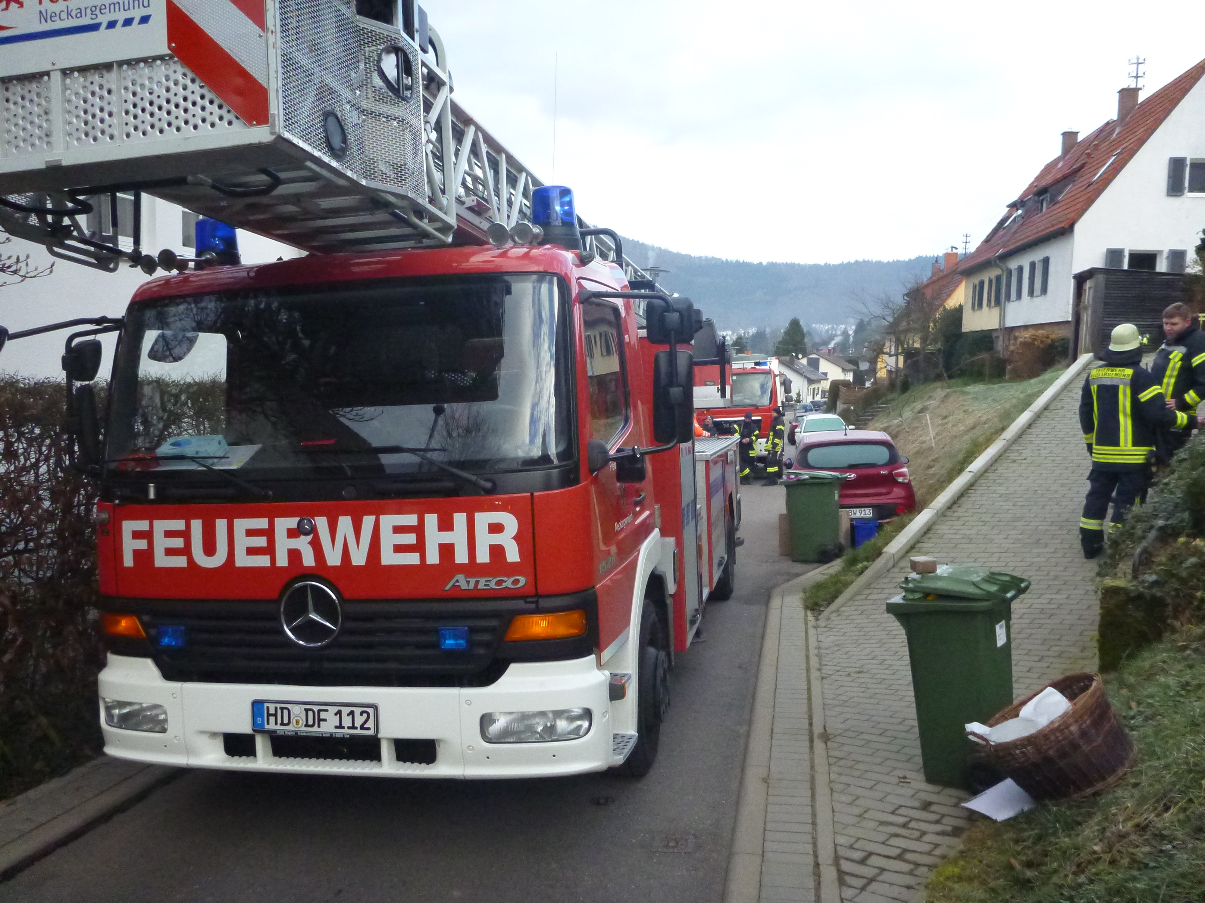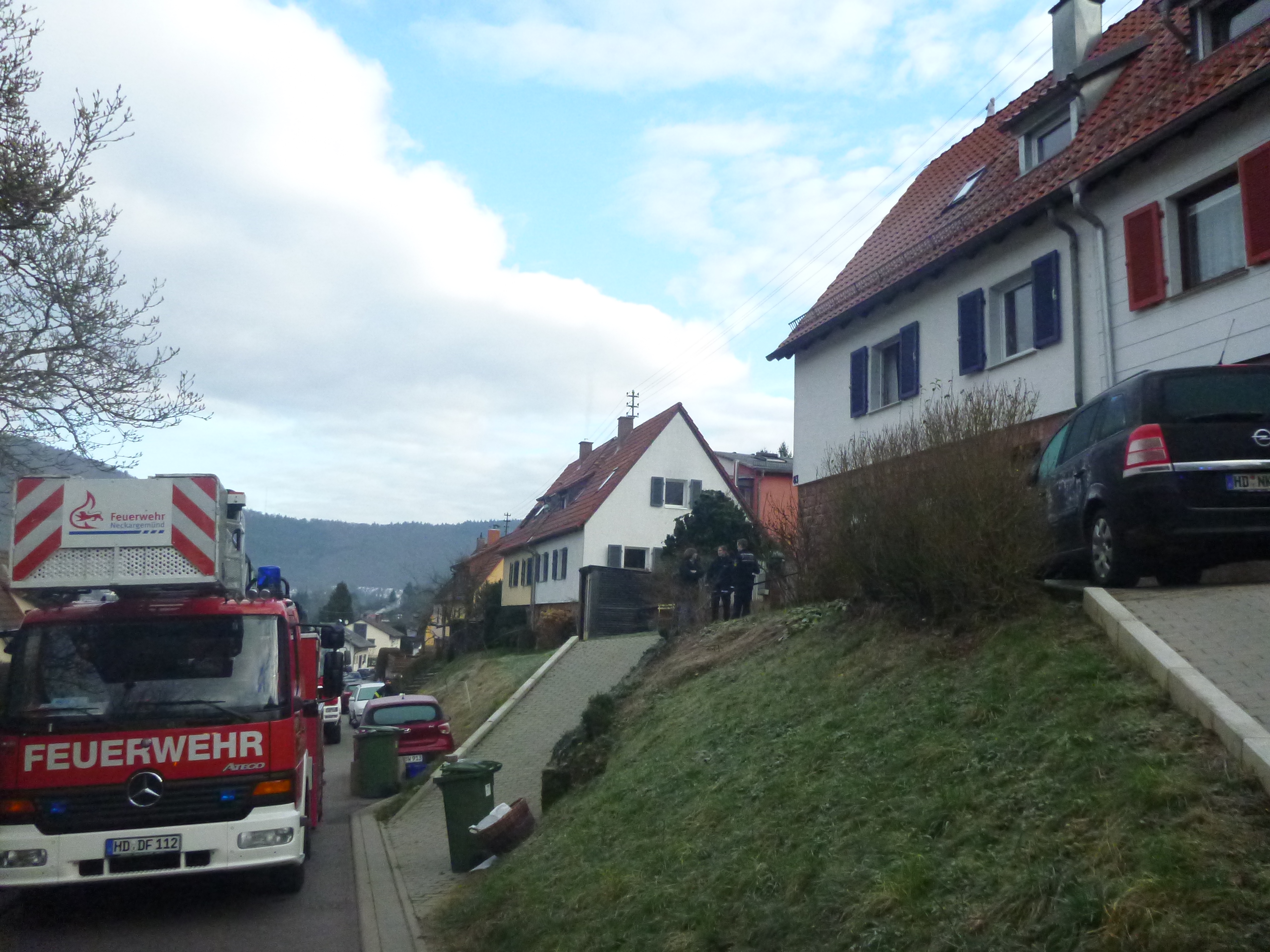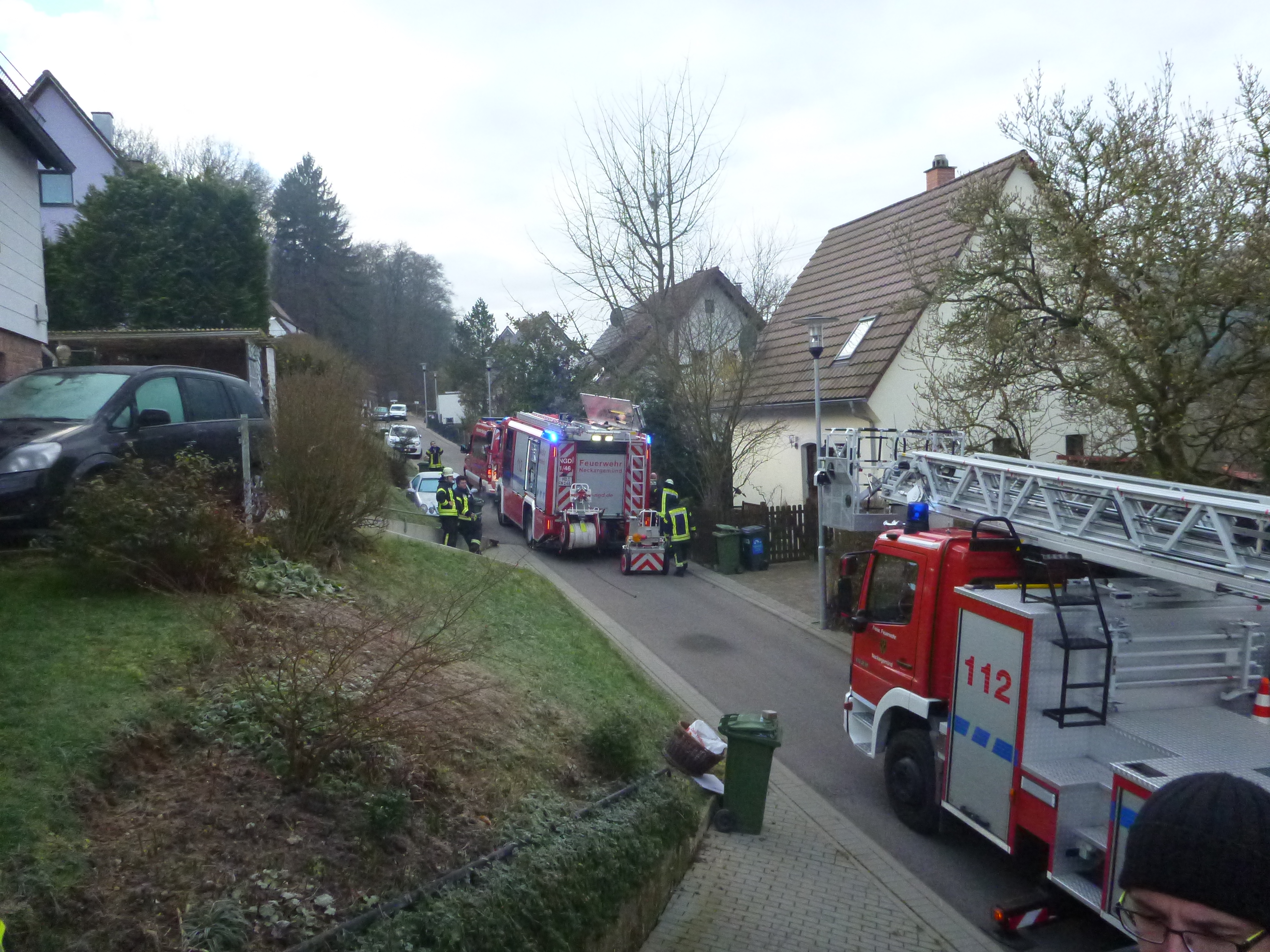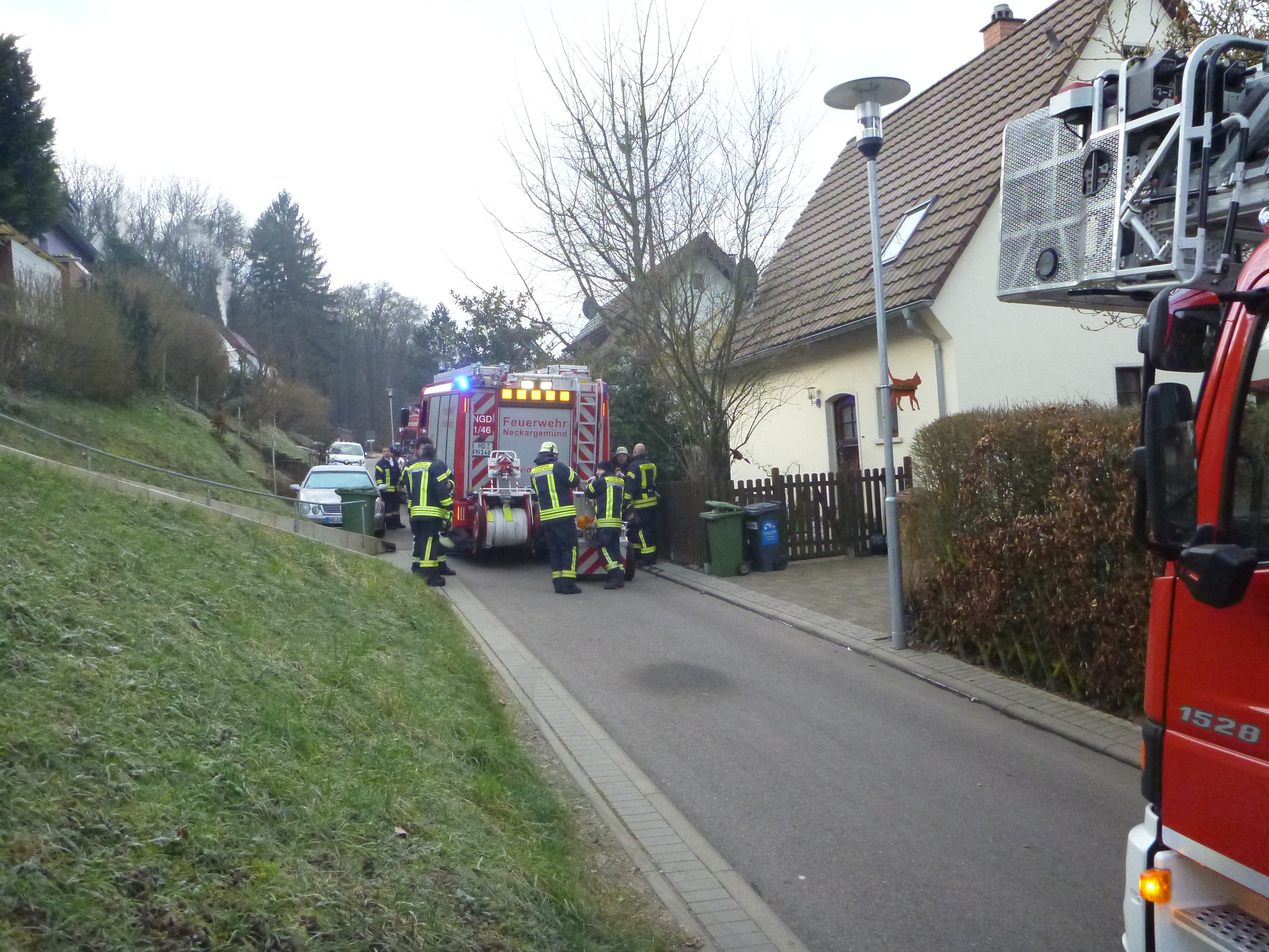 Die Maßnahmen der Feuerwehr beschränkten sich auf das Ausschalten der Heizungsanlage, die Nachforderung des Bezirksschornsteinfegers und Kontrolle des Kamins mittels Drehleiter.