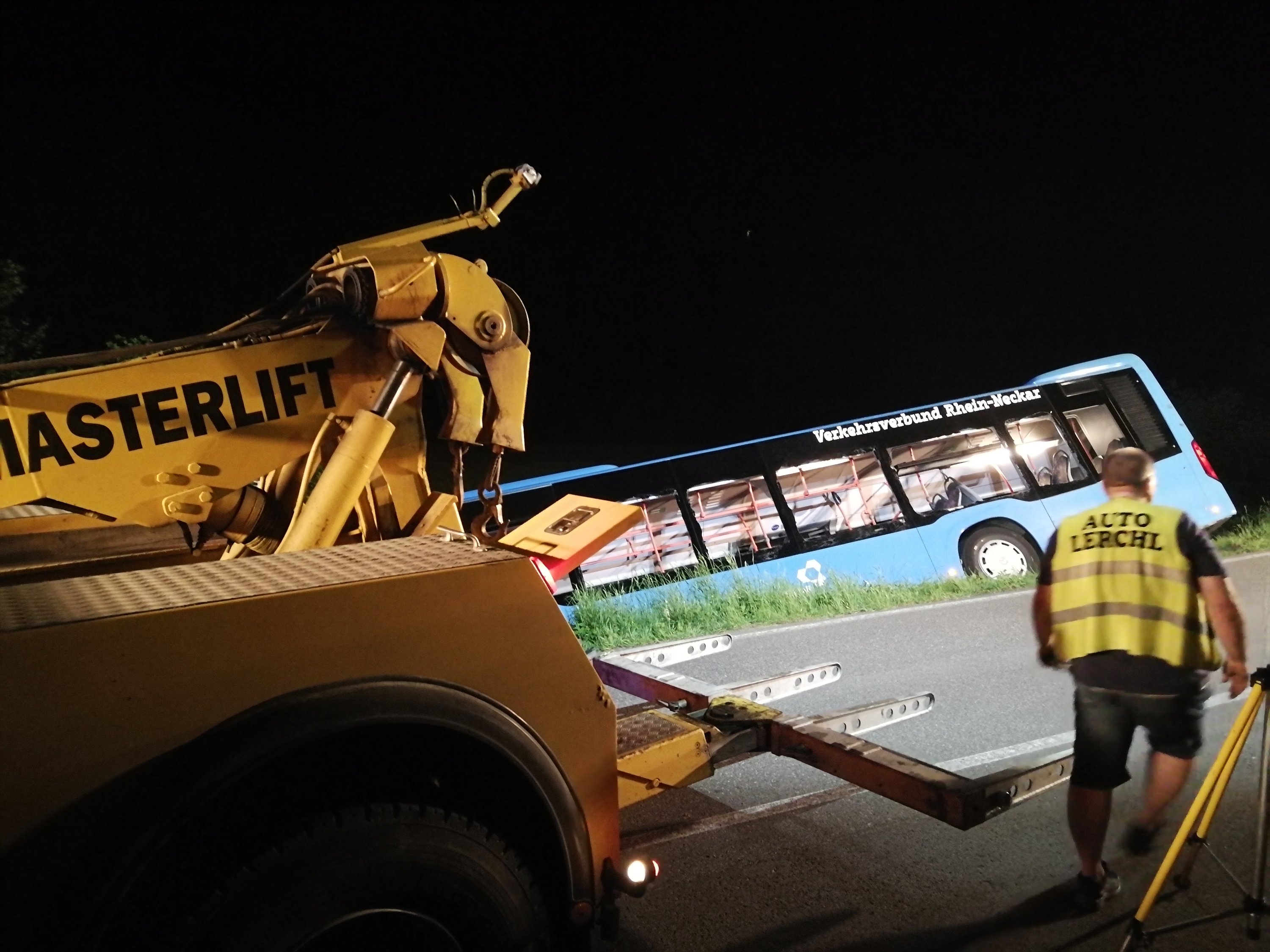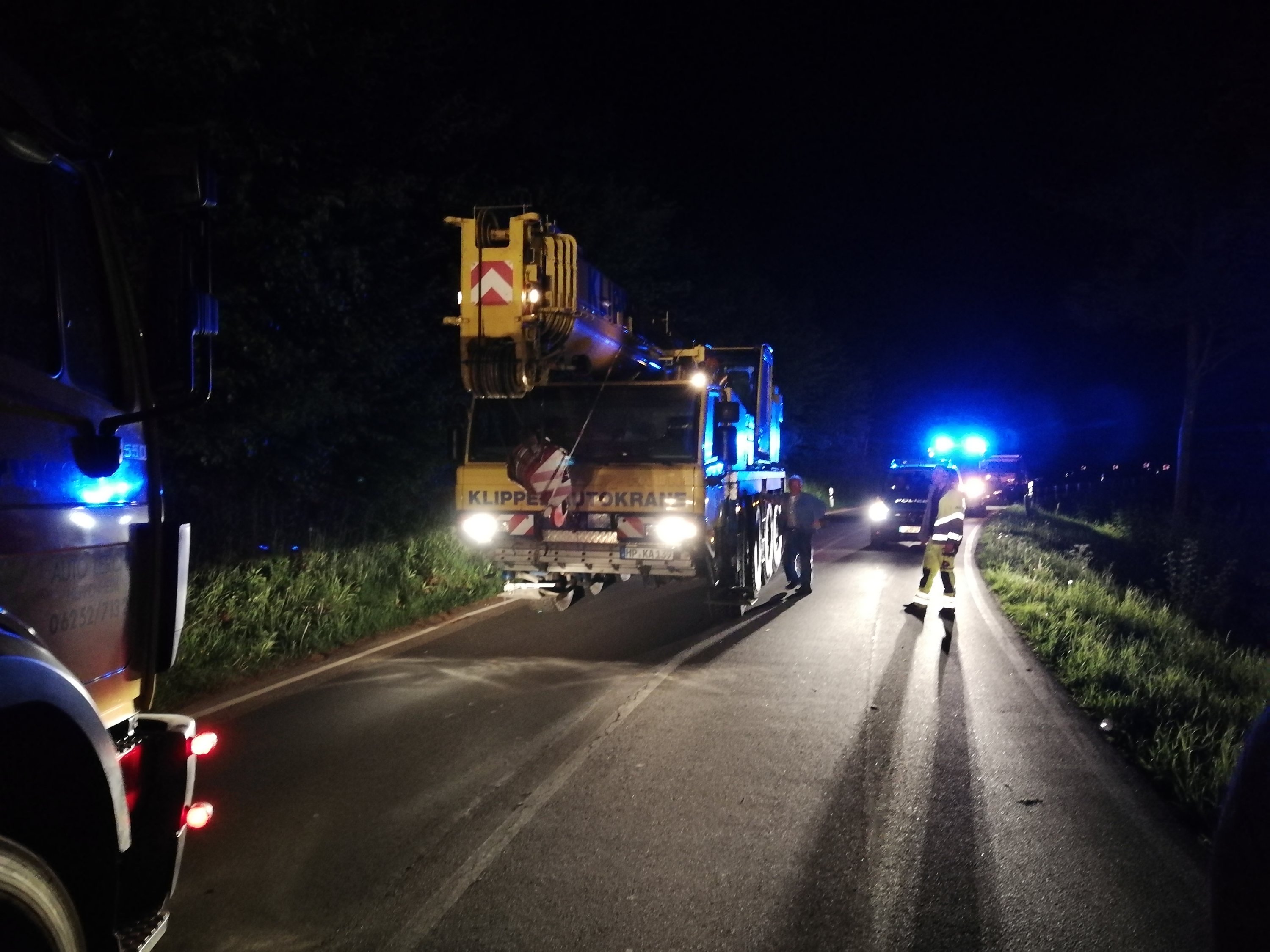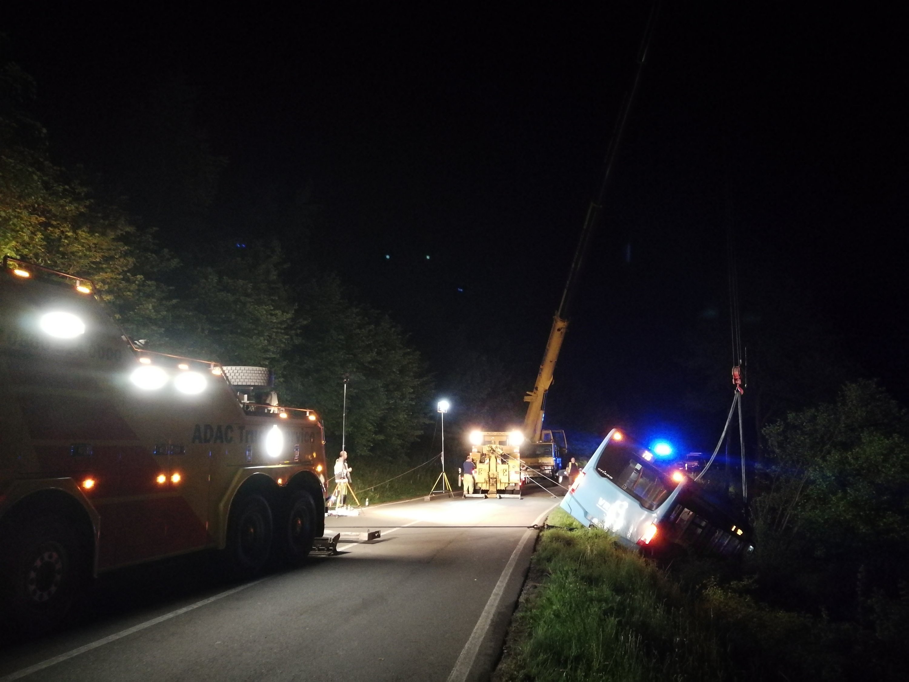 Im weiteren Verlauf wurde die Anzahl der Einsatzkräfte minimiert, sodass aus Neckargemünd nur noch der Rüstwagen und der Einsatzleitwagen vor Ort blieben. Die verbliebenen Einsatzkrafte standen während der Bergung in Bereitschaft und leuchteten die Einsatzstelle aus.