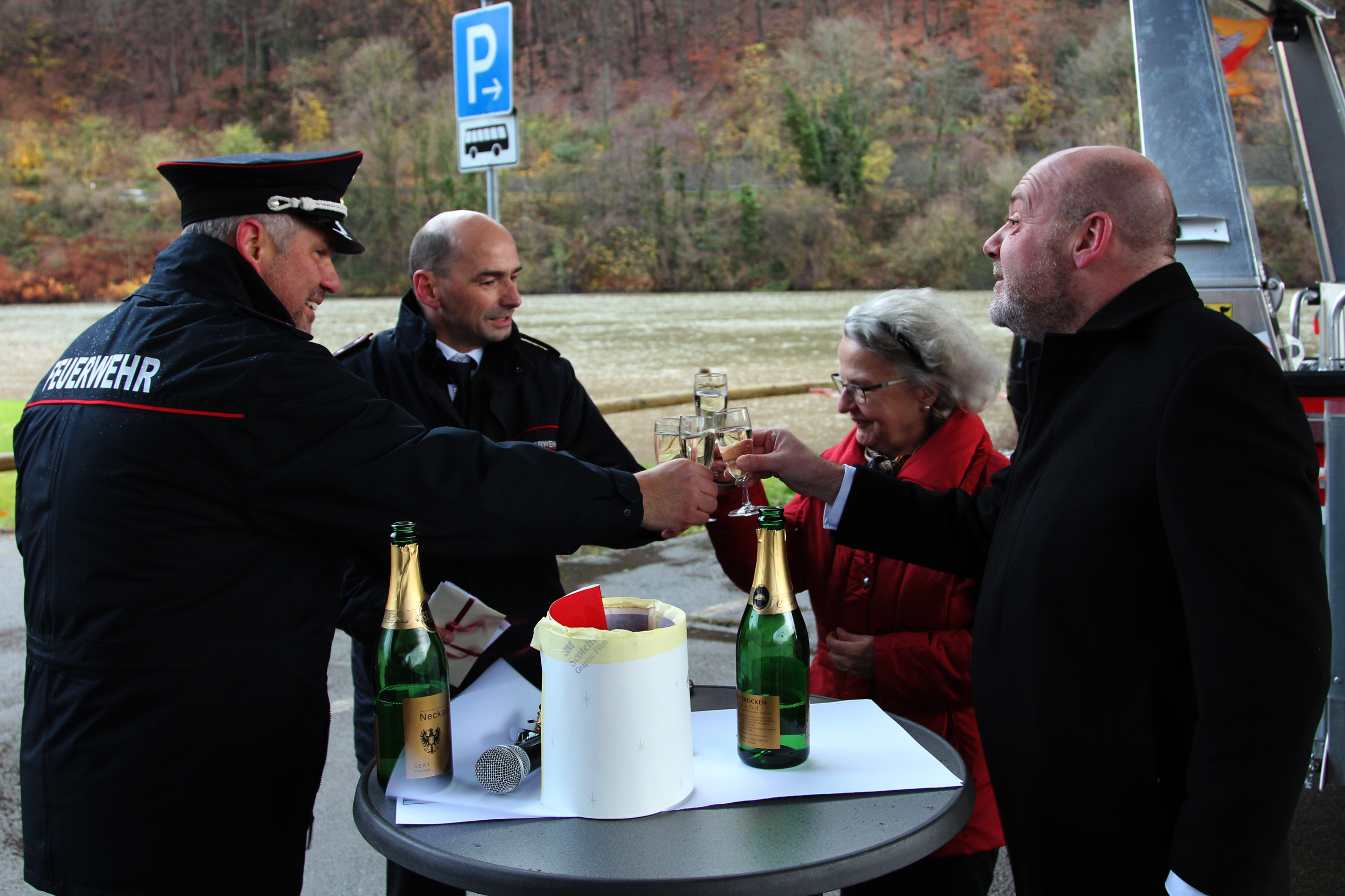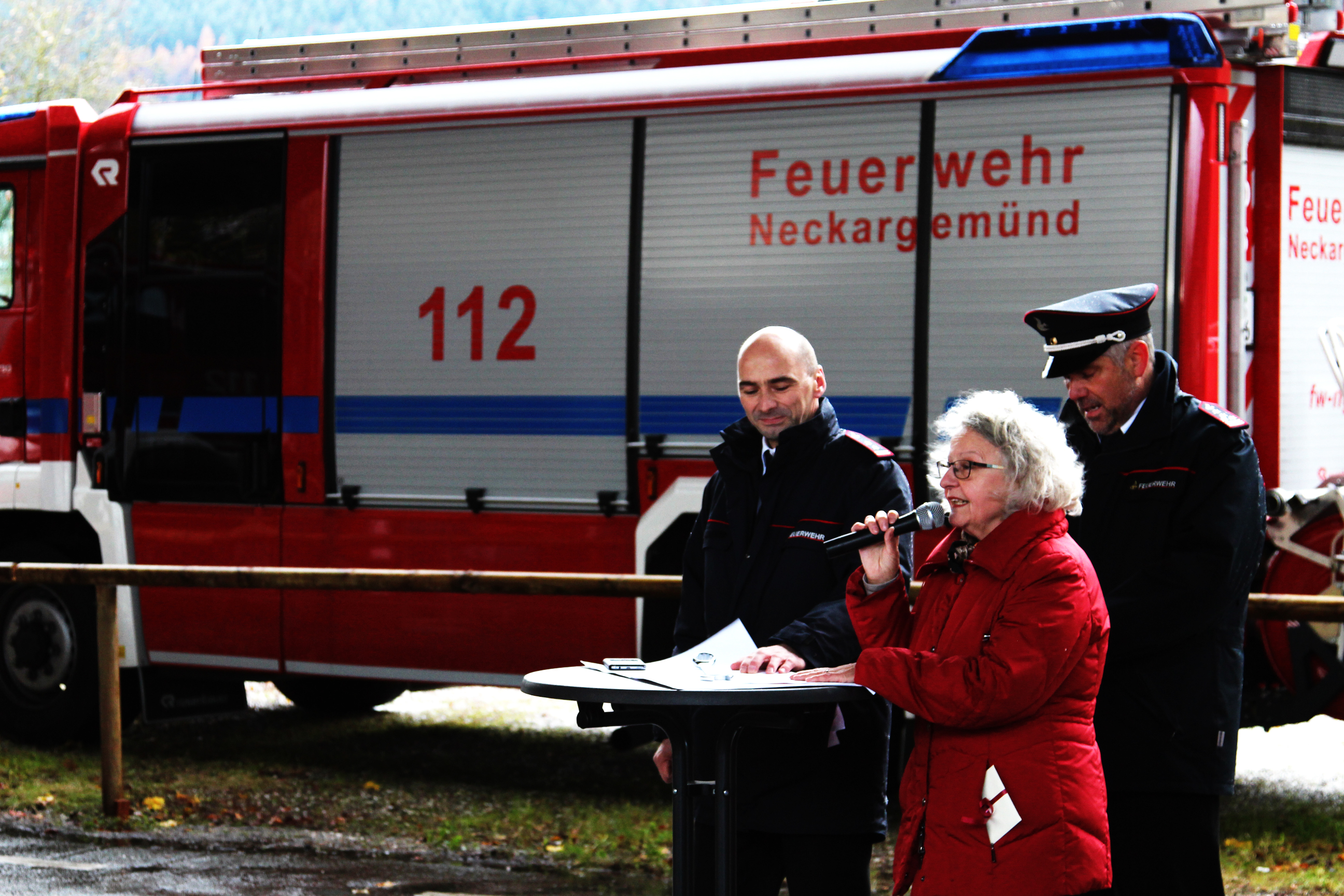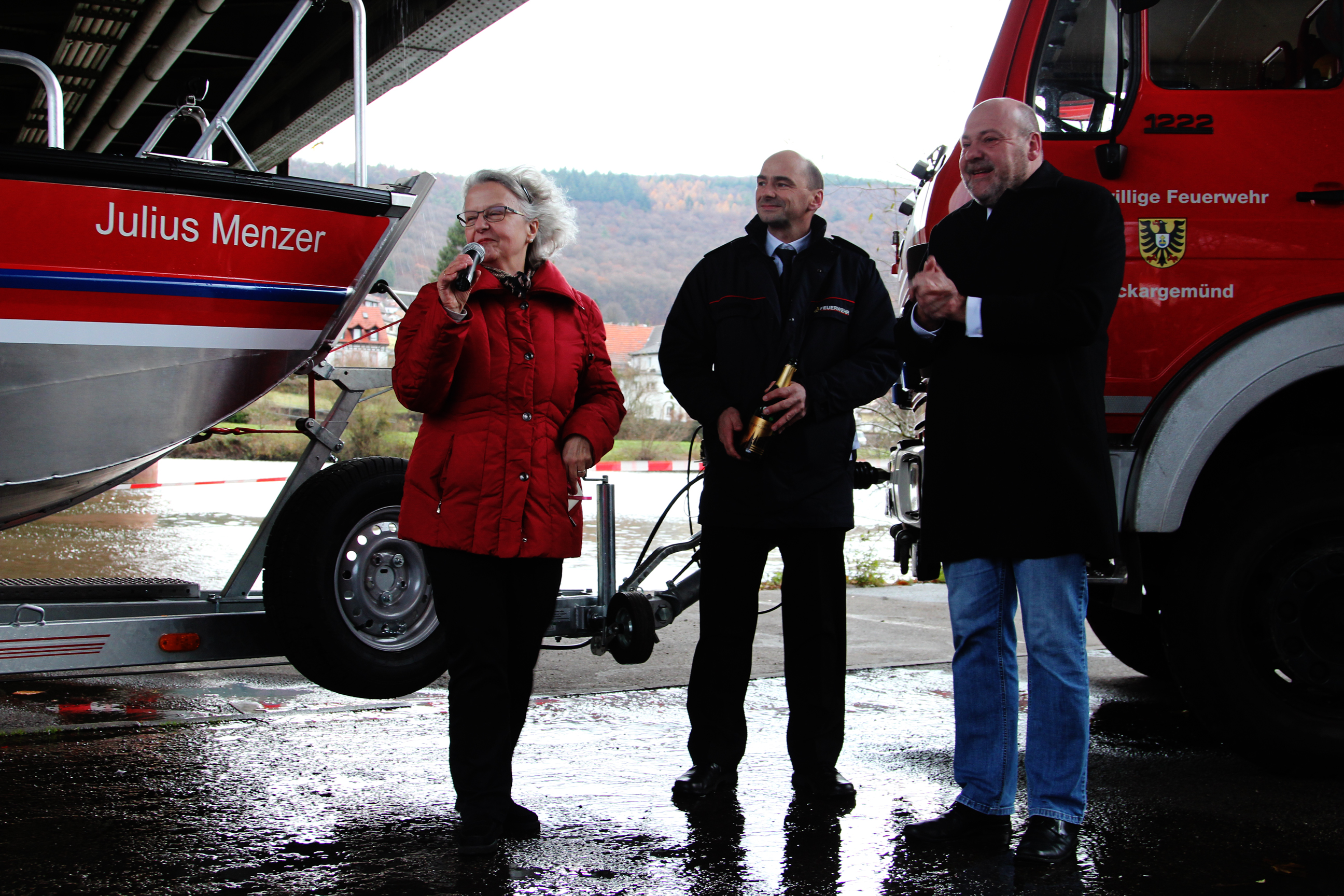Die Taufpatin Doris Meyer zu Schwabedissen (Leiterin Museum Stadt Neckargemünd und Kulturreferentin) blickte kurz in die Geschichte der Feuerwehr Neckargemünd zurück bevor sie den Namen bekannt gab. Ihr Augenmerk galt hier dem engagierten Kommandanten Julius Menzer der im 19. Jahrhundert einiges für die örtliche Feuerwehr umsetzte.