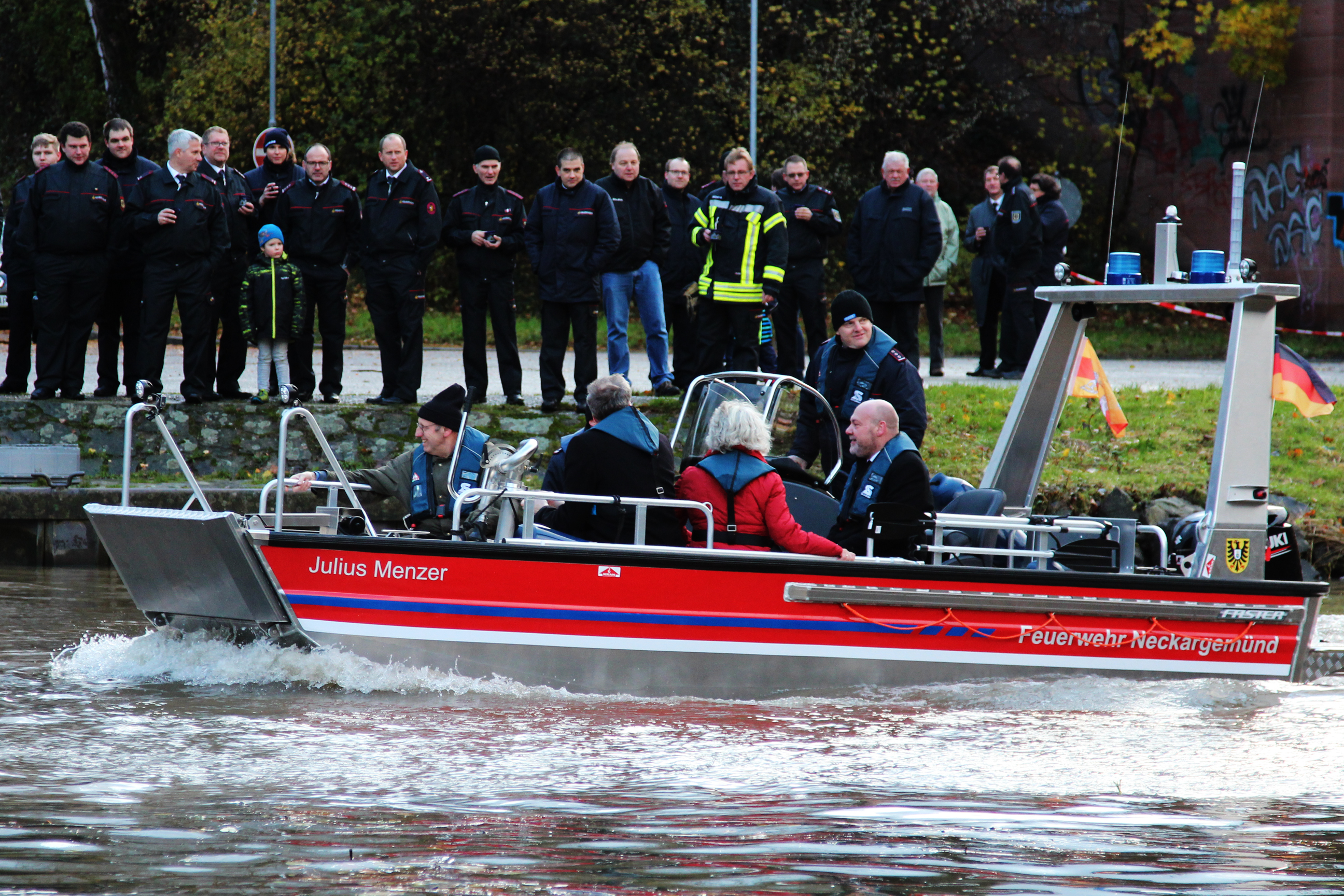Das neue Mehrzweckboot der Feuerwehr Neckargemünd wurde am vergangenen Samstag bei einer kleinen Feier am Neckar auf den Namen „Julius Menzer“ getauft und anschließend in den Einsatzdienst übernommen.