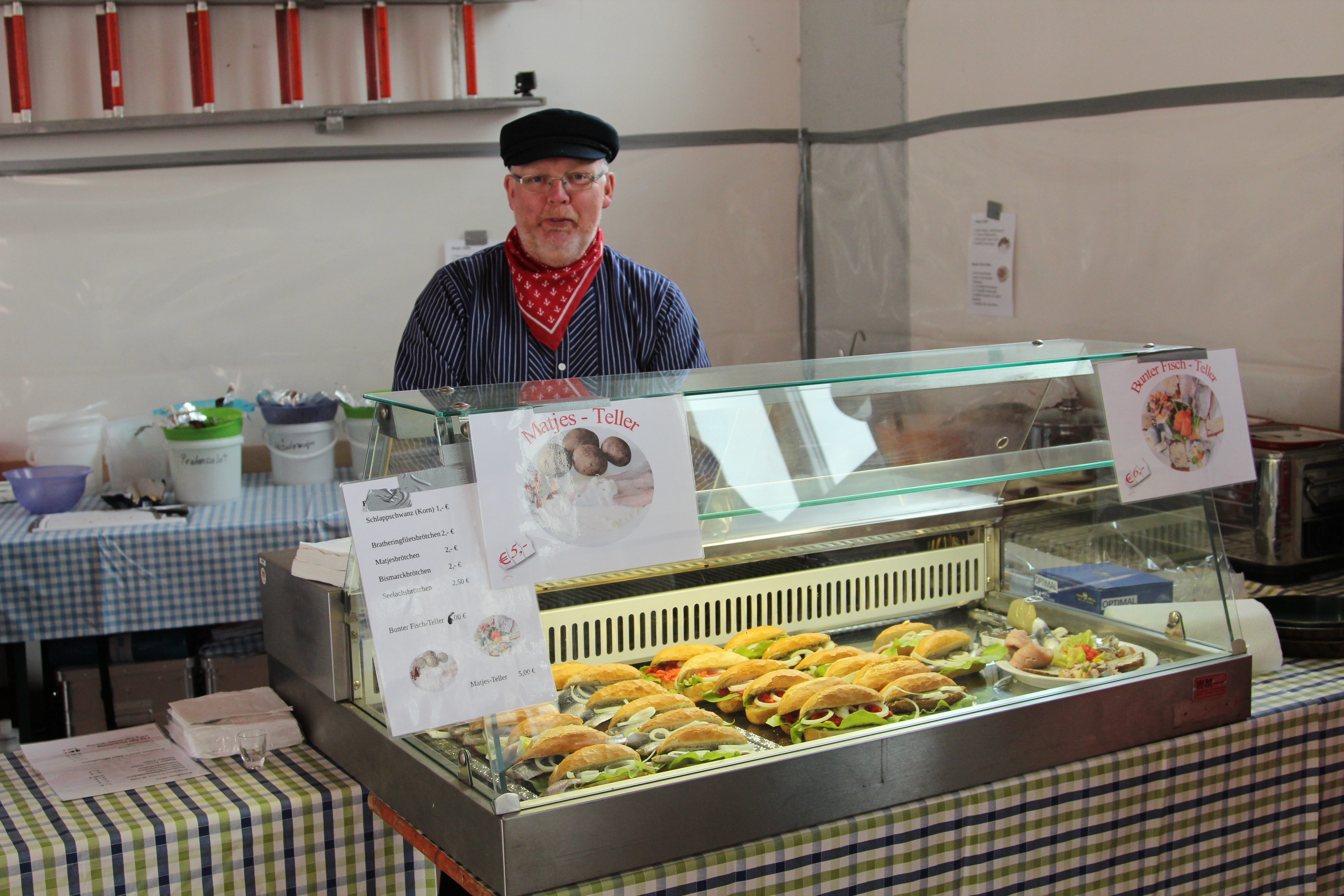 Für die Verköstigung standen wieder drei Mannschaften zur Verfügung. Das Küchenteam bot neben den bekannten Grillspezialitäten in diesem Jahr als Special „Ofenkartoffel mit Dip“ und einen „Rindereintopf“ an. Unsere Freunde von der Feuerwehr Bad Bramstedt nahmen wieder den weiten Weg mit reichlich Fischspezialitäten auf sich und standen traditionell mit ihrer Fischtheke bereit. Auch der Kuchen durfte natürlich nicht fehlen. Viele fleißige Konditoren haben wieder leckere Kuchen und Torten gezaubert.