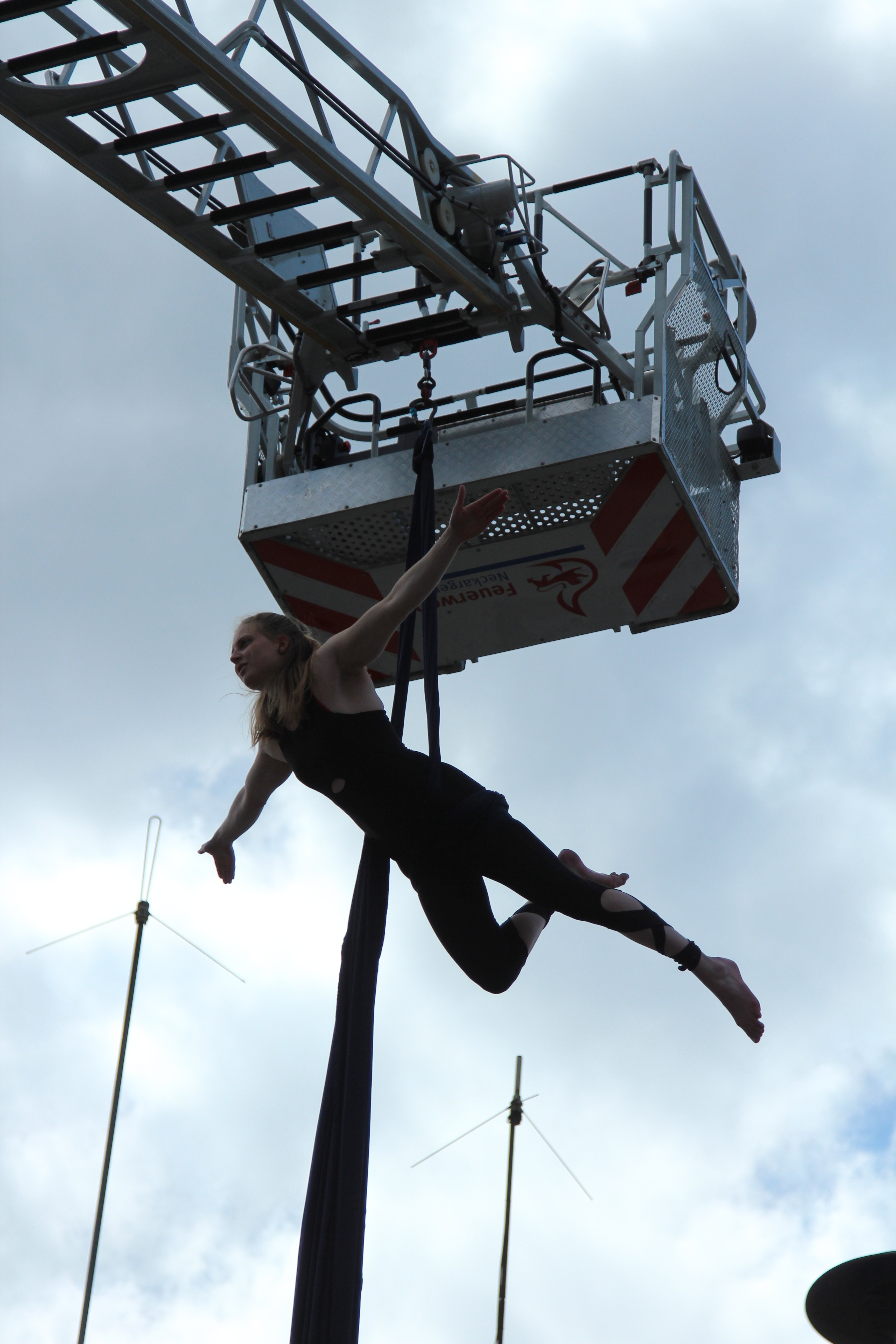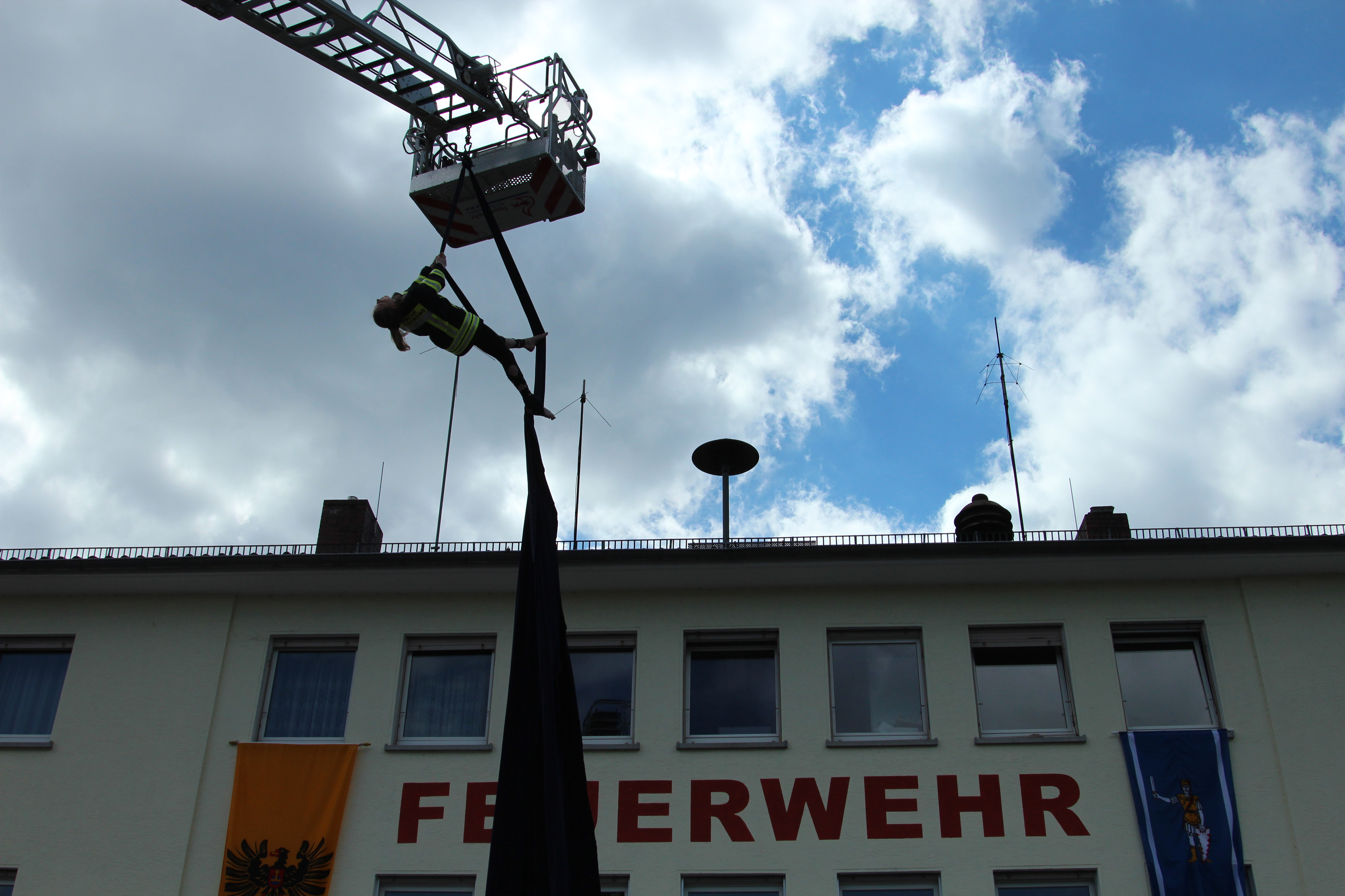 Vertikalakrobatik an der Neckargemünder Drehleiter