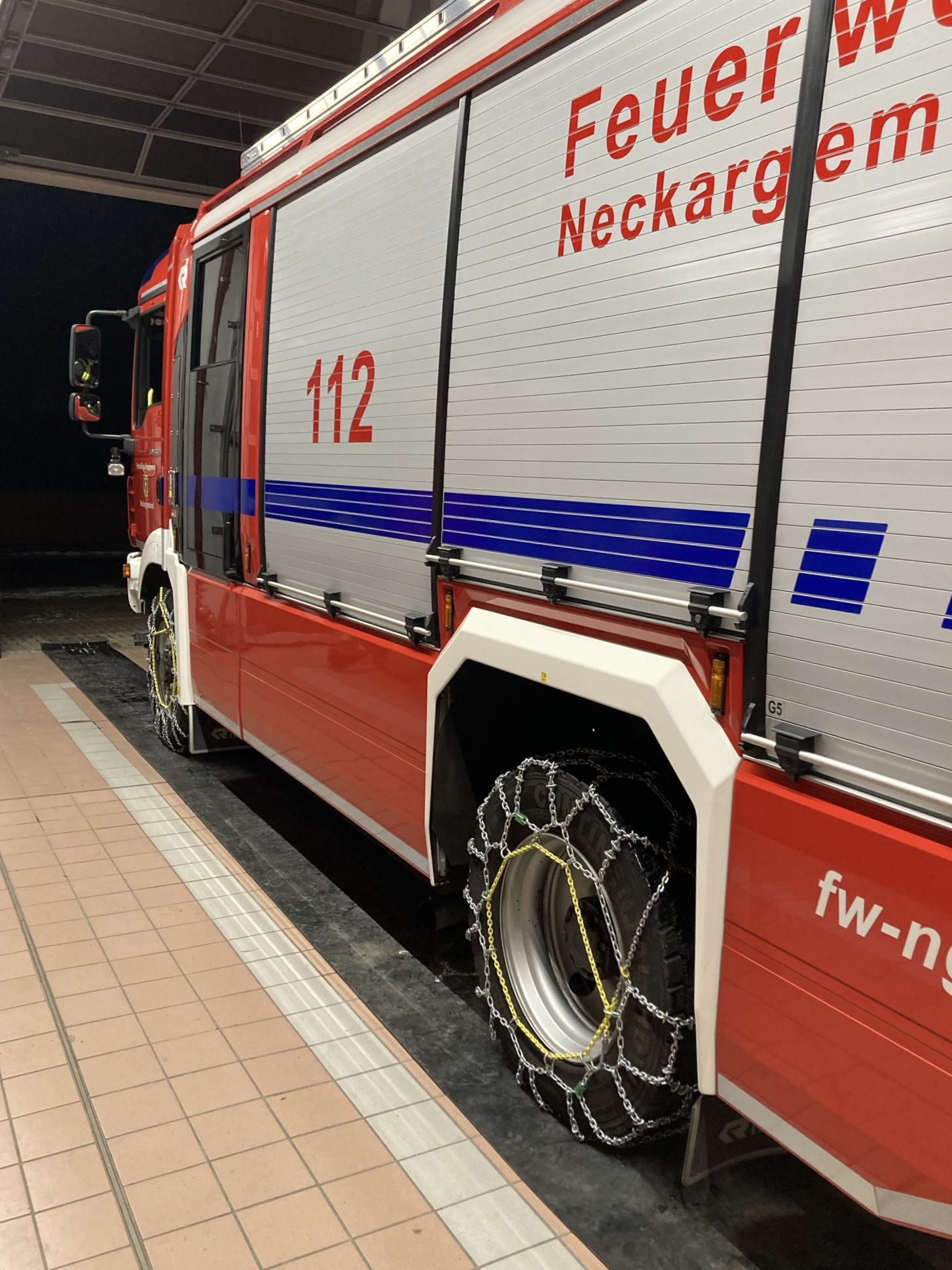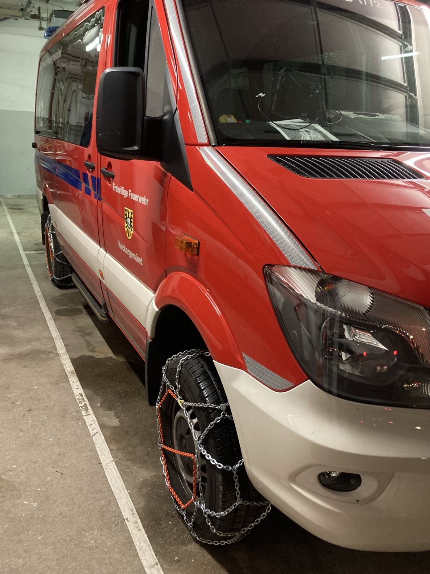 Damit die Feuerwehr Neckargemünd für die drohende Unwetterlage vorbereitet ist, haben wir Schneeketten auf einen Teil unserer Fahrzeuge gezogen. So sind wir für alle Eventualitäten gewappnet und es ist sichergestellt, dass wir Ihnen bei allen Wetter- und Straßenlagen in der Not helfen können.