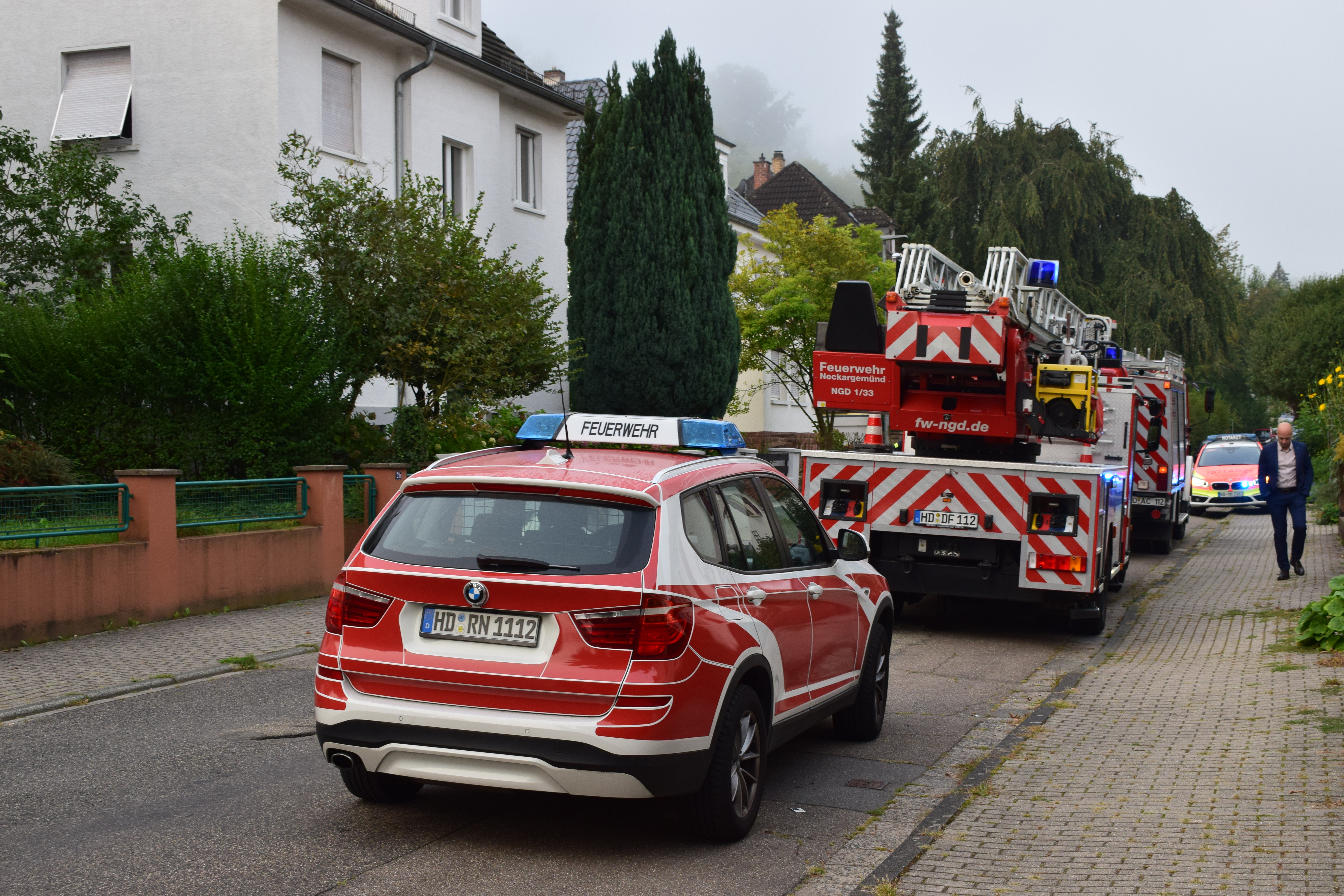 Die Feuerwehr Neckargemünd war an diesem Morgen mit insgesamt 21 Kräften vor Ort. Im Einsatz waren der Einsatzleitwagen (ELW 1), das Hilfeleistungslöschfahrzeug (HLF 20/20), die Drehleiter (DL(A)K 23/12) und das Tanklöschfahrzeug (TLF 16/25) , sowie später auch das Kleineinsatzfahrzeug (KEF) um die kontaminierte Einsatzkleidung entsprechend zu verpacken und der Reinigung zuzuführen. Vor Ort waren außerdem der Kreisbrandmeister (KBM) des Rhein-Neckar-Kreises, der Bürgermeister aus Neckargemünd, sowie der Rettungsdienst und die Polizei.