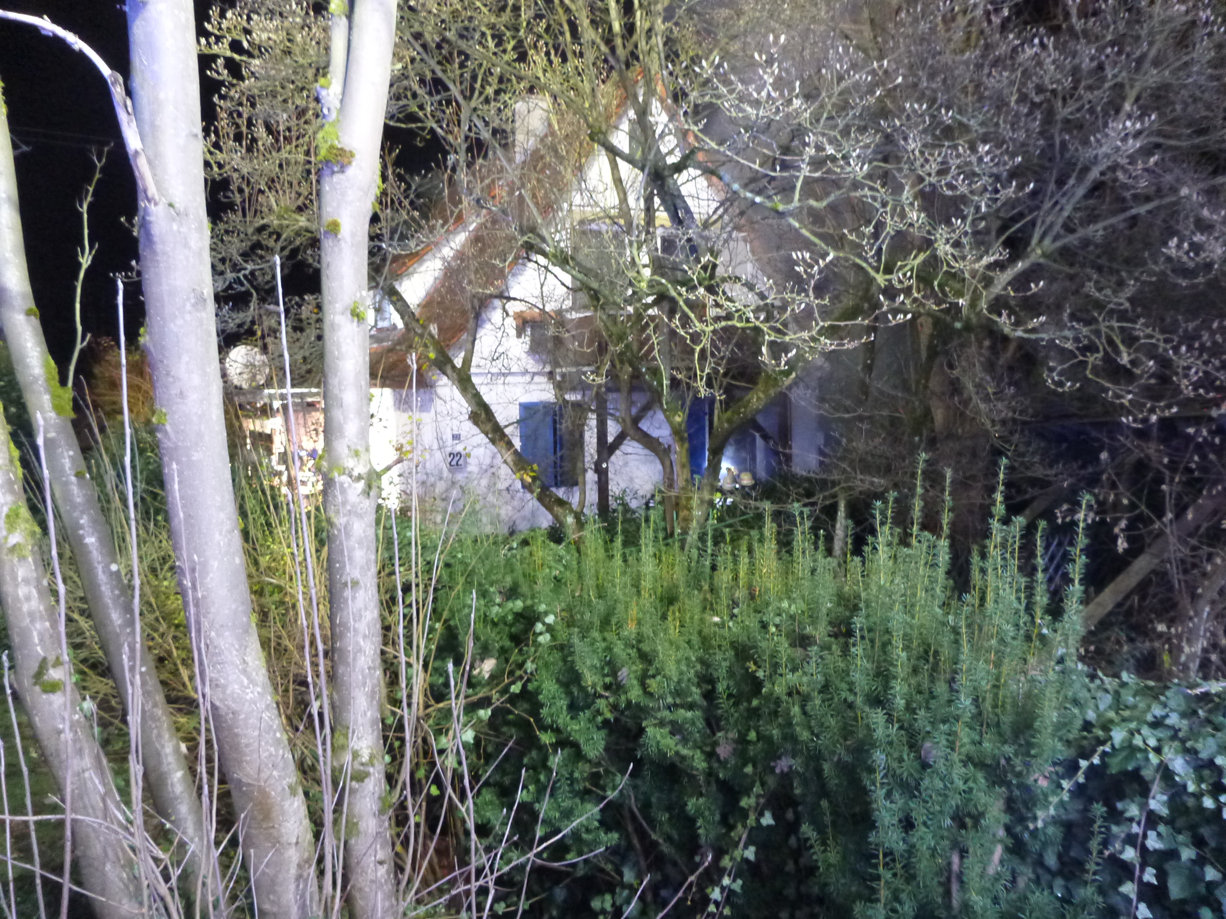 Parallel zur Personensuche und Brandbekämpfung wurden von außen Lüftungsmaßnahmen aufgebaut. Über die Drehleiter und zusätzliche Scheinwerfer wurde die Einsatzstelle großflächig ausgeleuchtet.