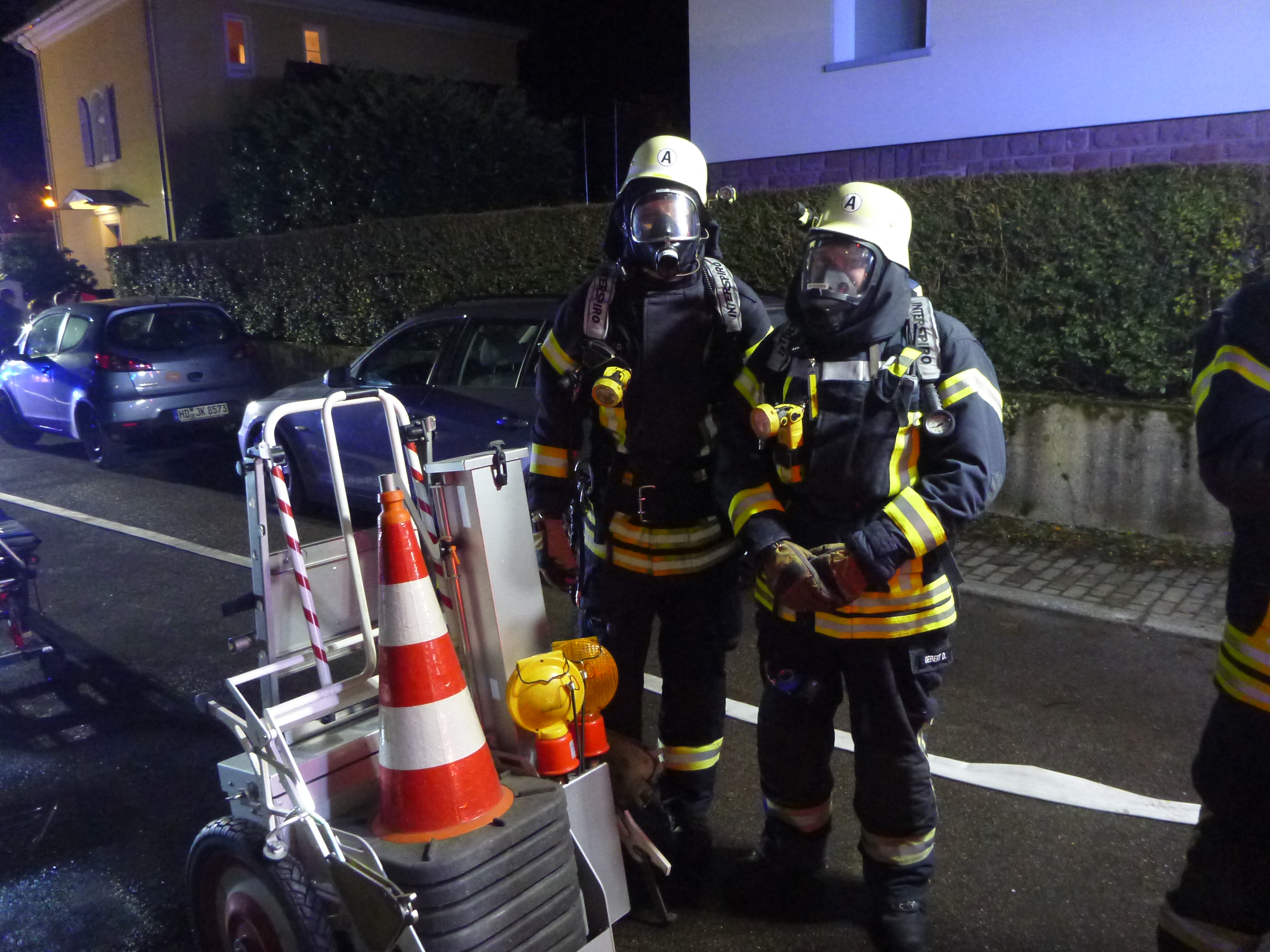 Daraufhin wurde Vollalarm für die Abteilungen Neckargemünd ausgelöst. Zwei Trupps unter Atemschutz begannen direkt mit der Personensuche und Brandbekämpfung.